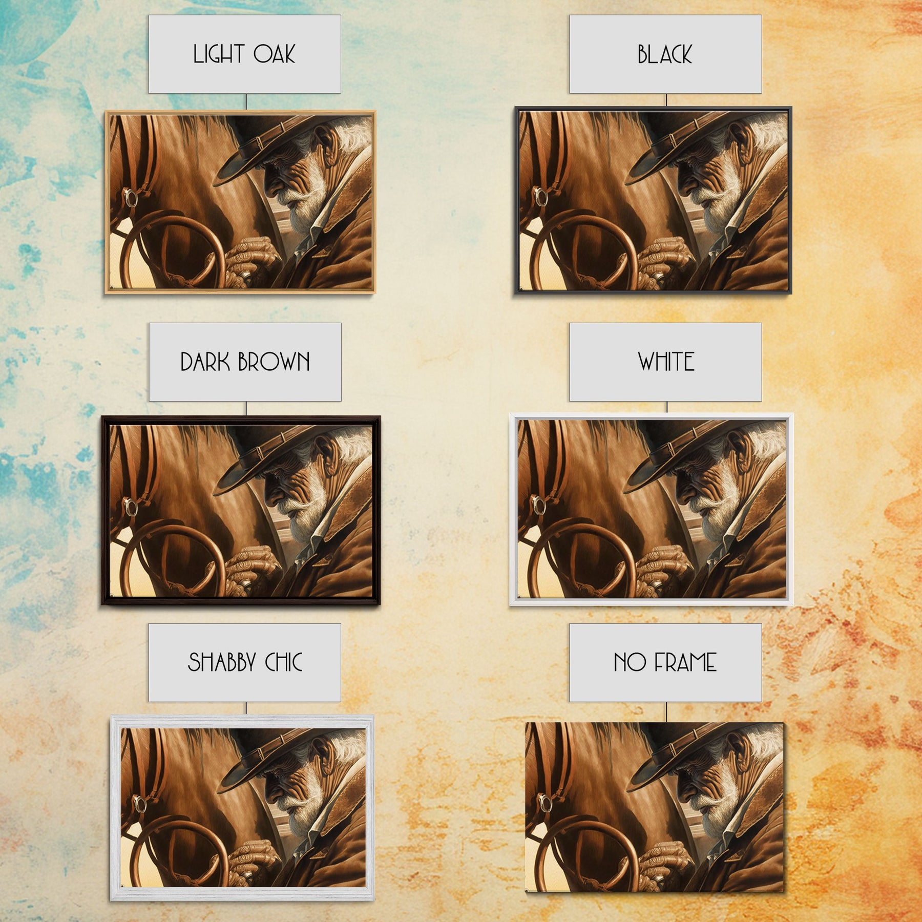 *Optional frames add a total of 1.5 inches to each dimension, for example a 10x20 canvas with a frame will be 11.5 by 21.5 inches total. All framed canvas are 1.5" total depth.