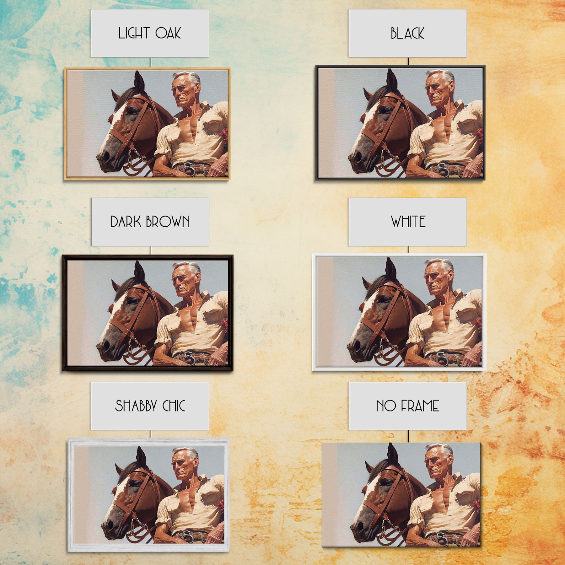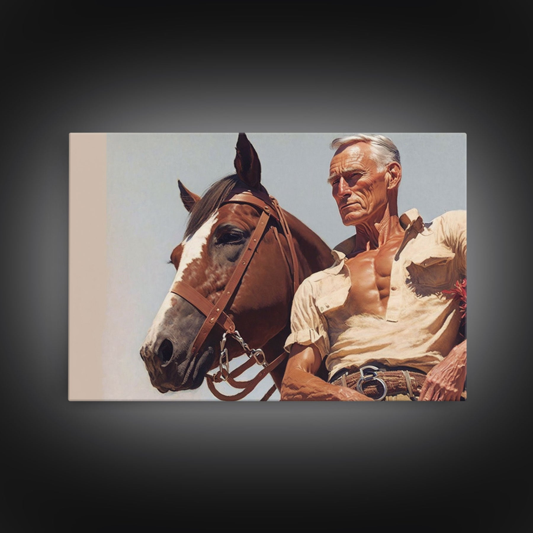 The Old West American Frontier Cowboy Framed Canvas Print, Western Decor, 50s Style Western Art, Farmhouse Decor, Southwestern Art