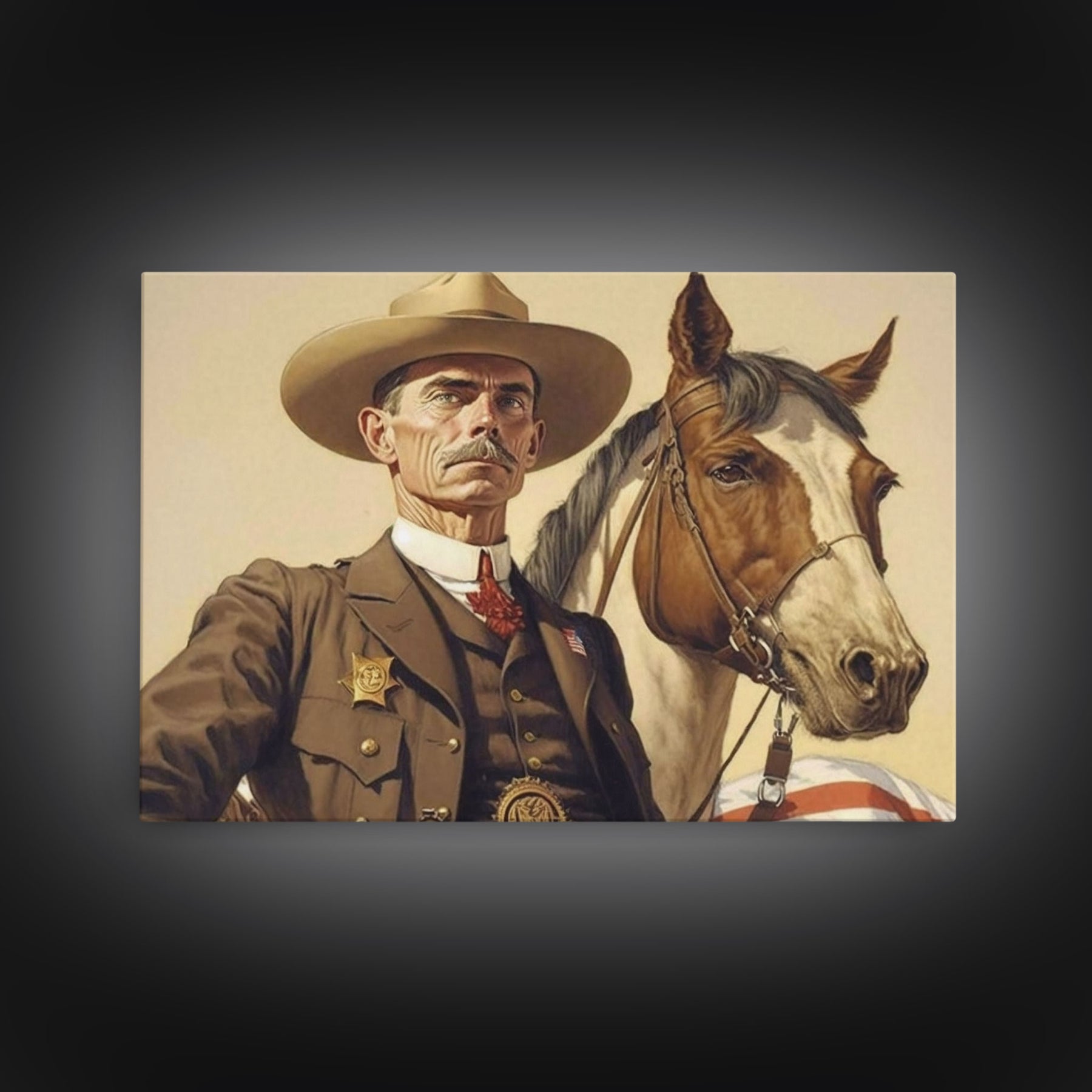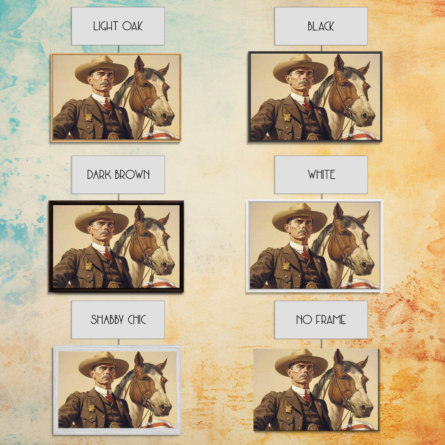 The Old West American Frontier Cowboy Framed Canvas Print, Western Decor, 50s Style Western Art, Farmhouse Decor, Southwestern Art
