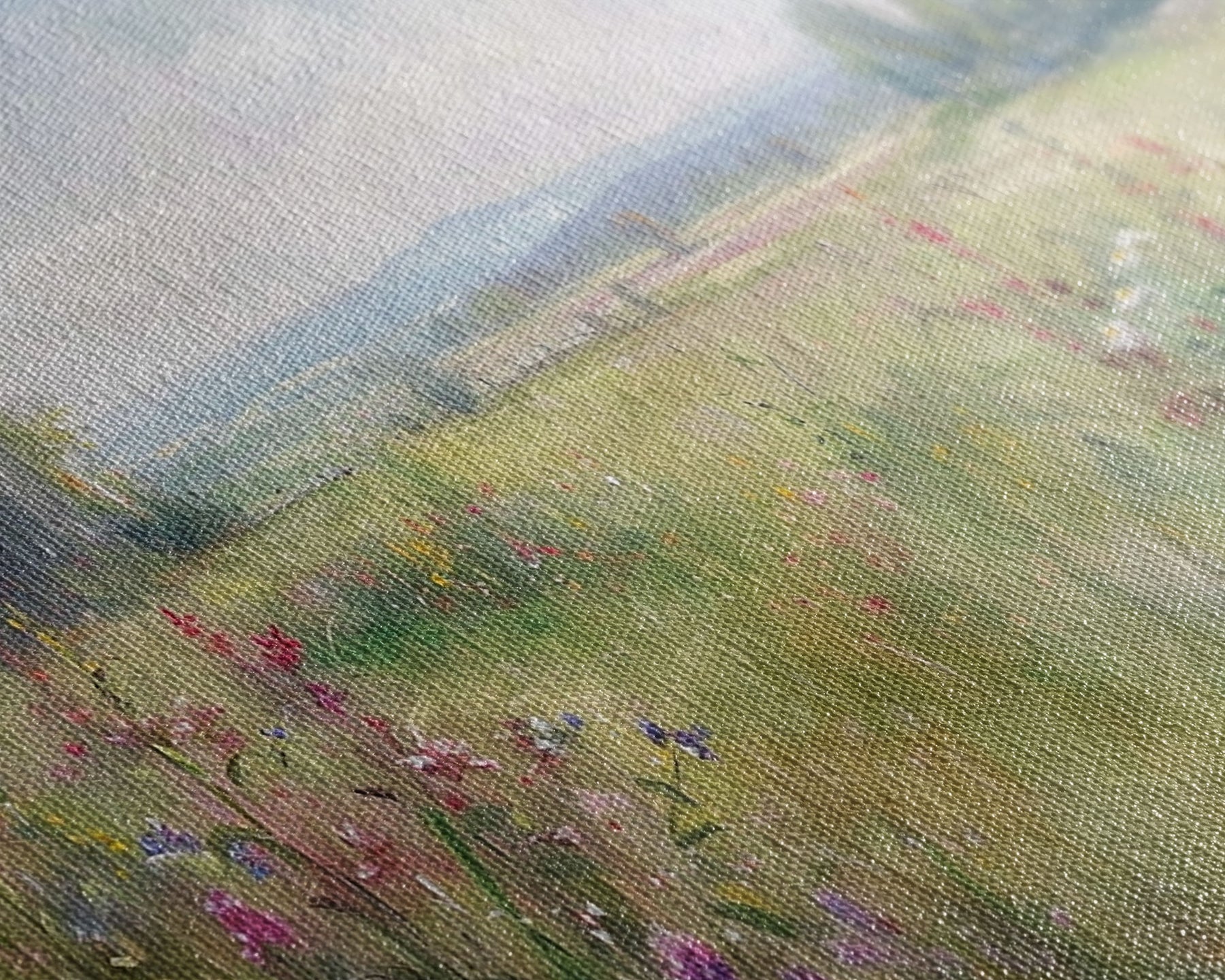 Most of our canvases are made in the USA, with the exception of canvases ordered with the light oak unstained frames, and any large canvases (24x48, 30x60, 16x48 and 20x60) ordered WITH a frame. These are temporarily made in and shipped from Europe, while we try to find a more consistent supplier in the USA.