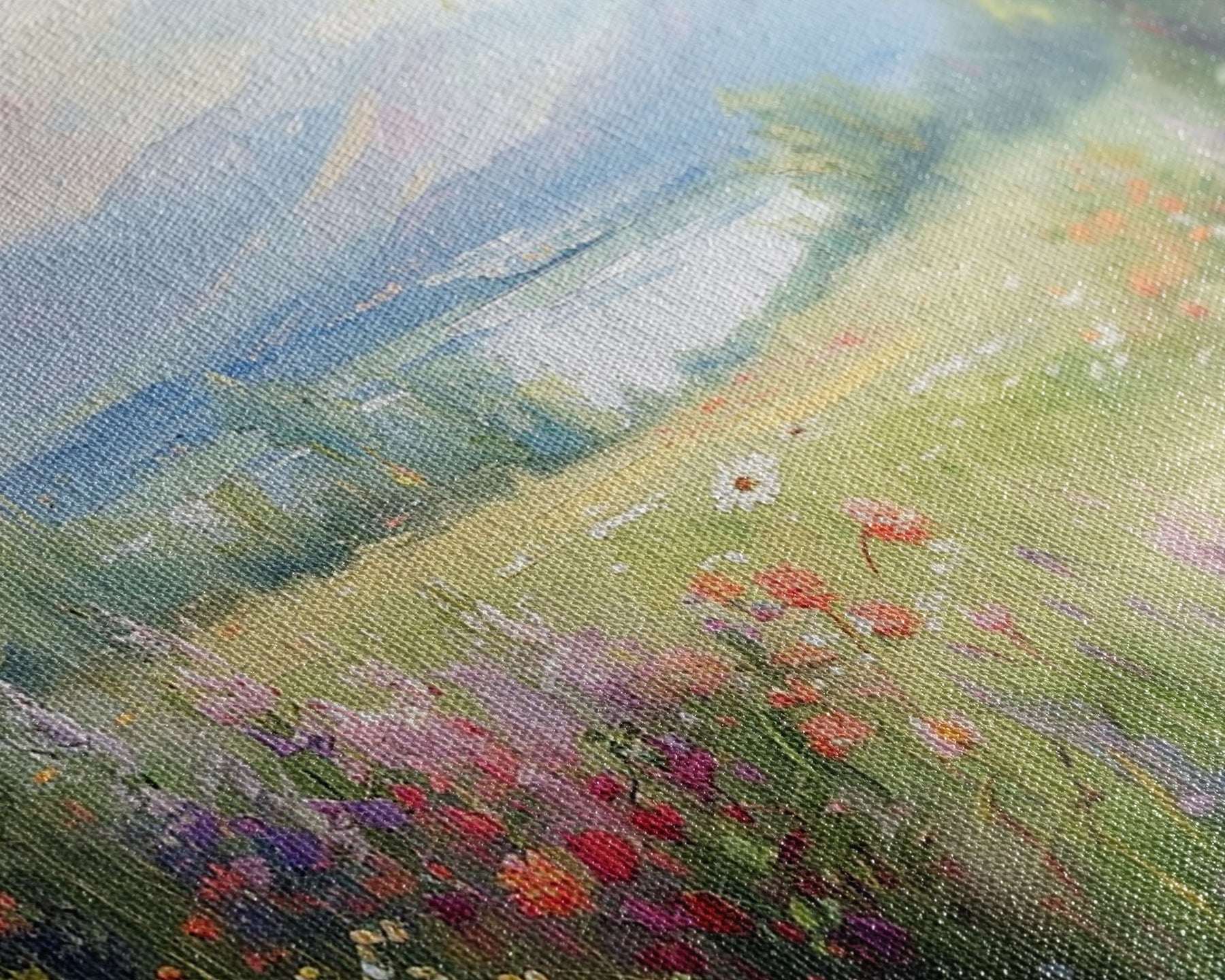 Most of our canvases are made in the USA, with the exception of canvases ordered with the light oak unstained frames, and any large canvases (24x48, 30x60, 16x48 and 20x60) ordered WITH a frame. These are temporarily made in and shipped from Europe, while we try to find a more consistent supplier in the USA.