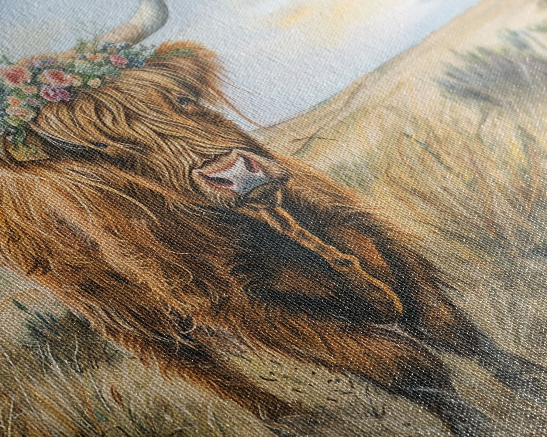 Vintage Cow Painting Framed Canvas Print | Retro Country Decor | Living Room Art | Gift For Her | Vintage Wall Art | Cottage Core Wall Art