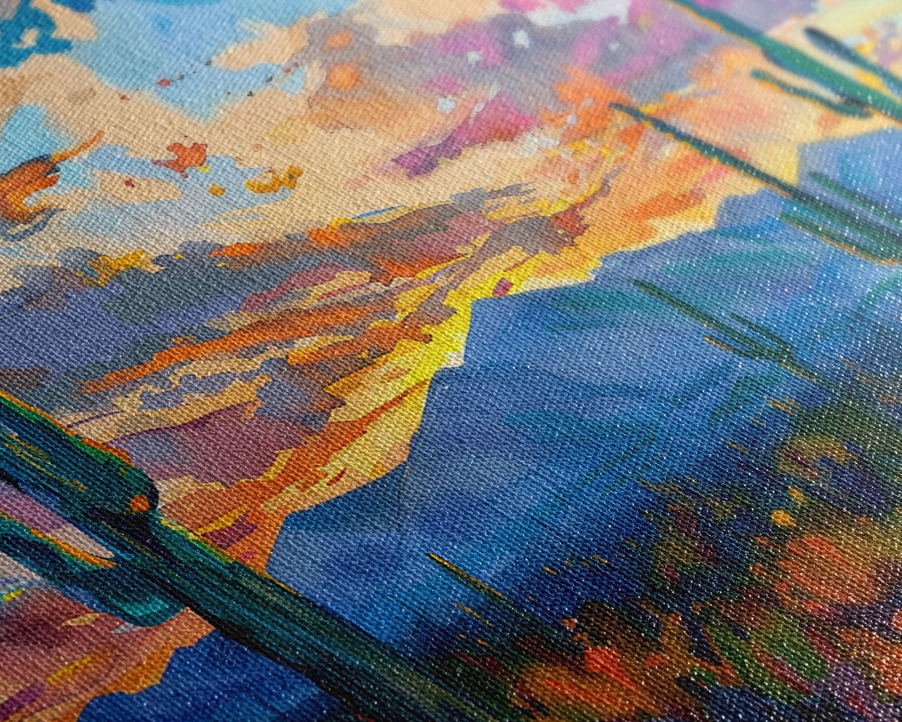 Most of our canvases are made in the USA, with the exception of canvases ordered with the light oak unstained frames, and any large canvases (24x48, 30x60, 16x48 and 20x60) ordered WITH a frame. These are temporarily made in and shipped from Europe, while we try to find a more consistent supplier in the USA.