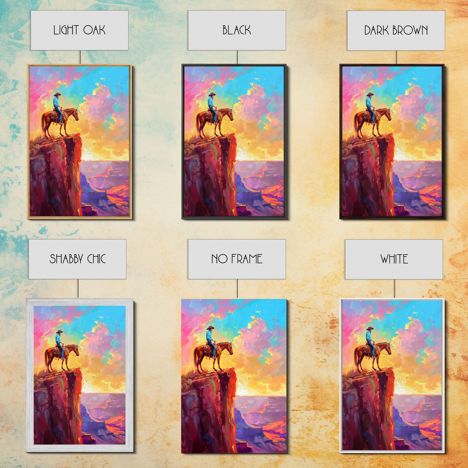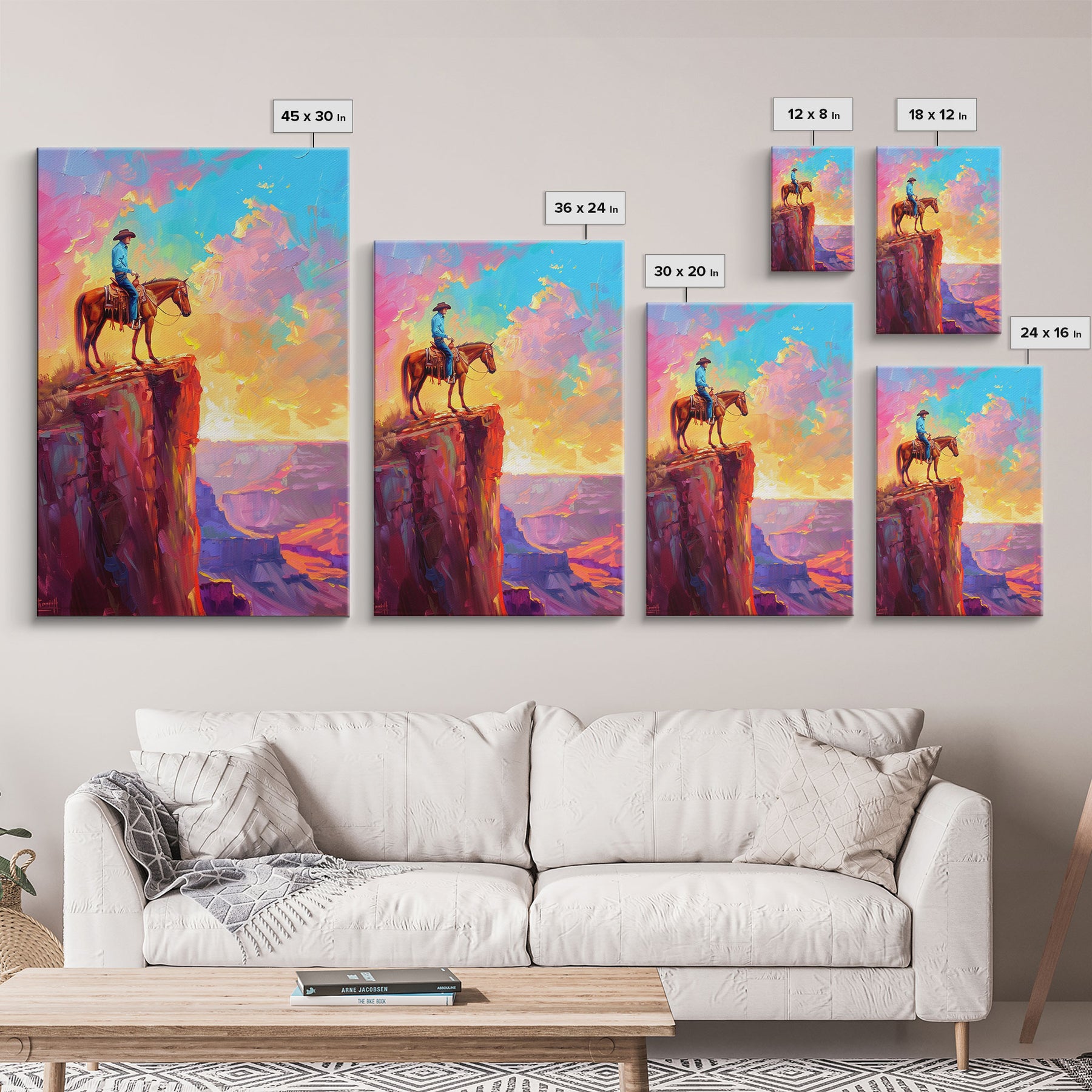 Cowboy on Horse at Sunrise - Colorful Western Landscape Painting, Sunrise Wall Art, Living Room Decor, Cowboy Canvas Print