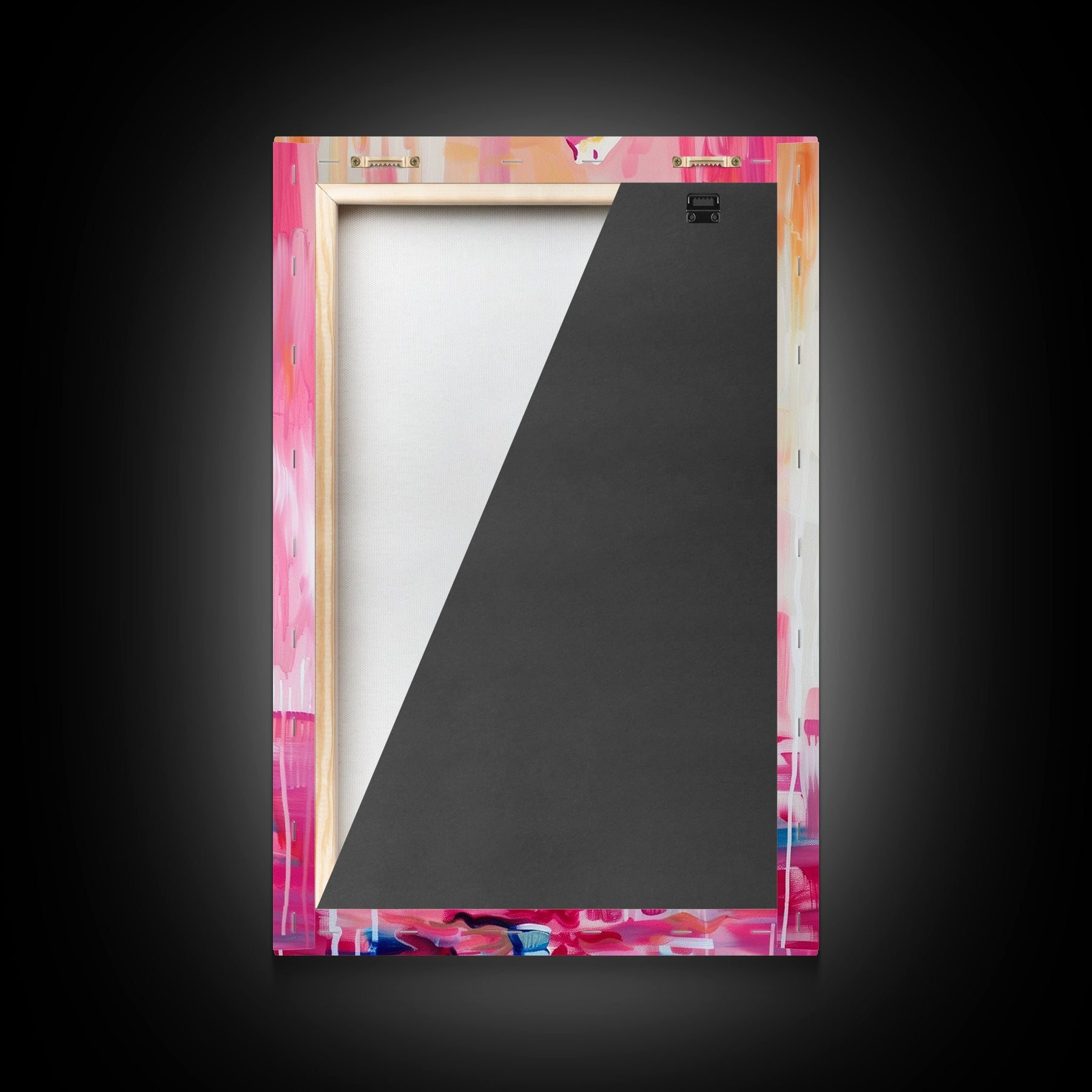 Cowboy Riding in Pink - Colorful Western Art, Framed Canvas Print, Living Room Decor, Cowboy Painting, Vibrant Wall Art