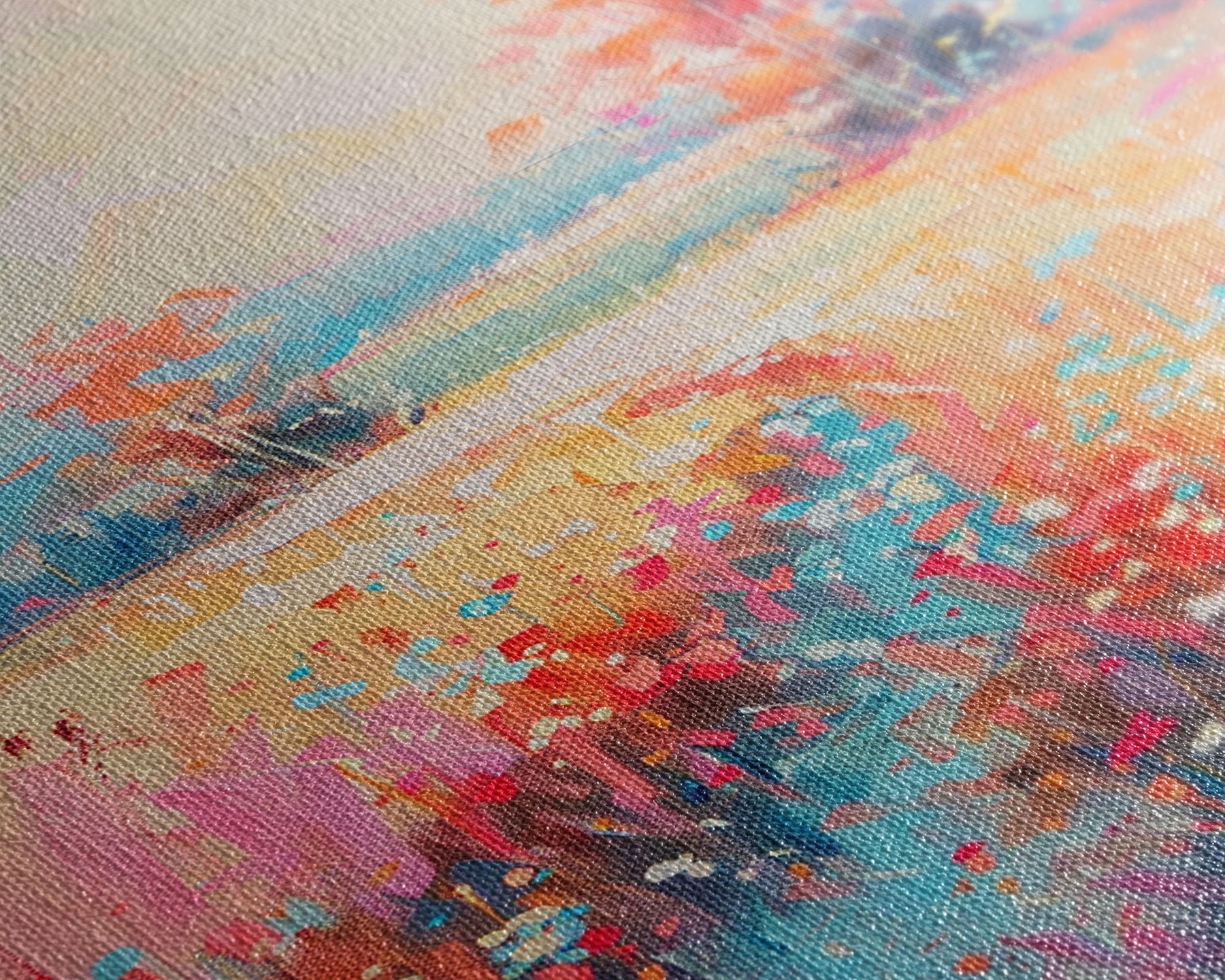 Most of our canvases are made in the USA, with the exception of canvases ordered with the light oak unstained frames, and any large canvases (24x48, 30x60, 16x48 and 20x60) ordered WITH a frame. These are temporarily made in and shipped from Europe, while we try to find a more consistent supplier in the USA.