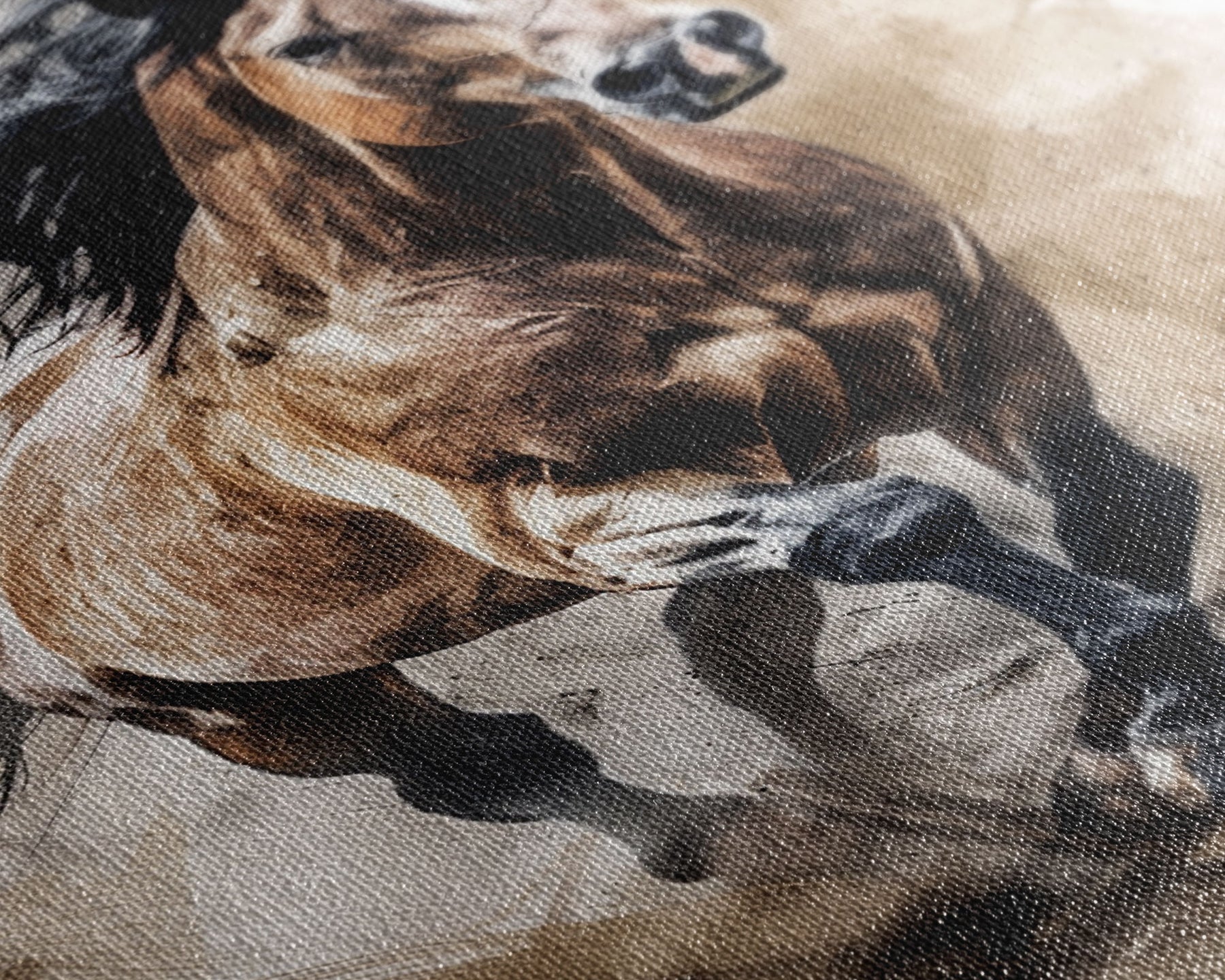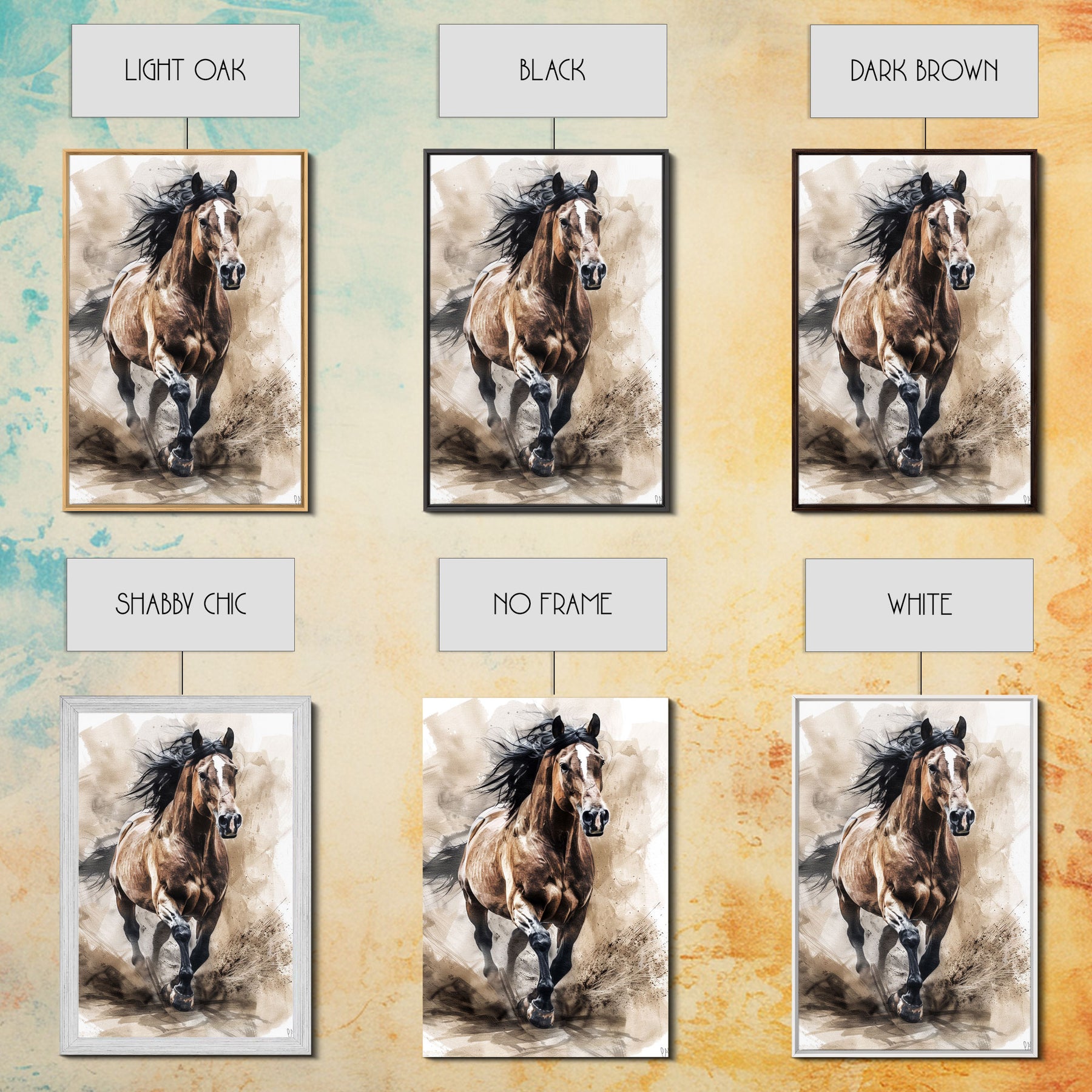 Powerful Horse Galloping - Framed Canvas Print, Dynamic Living Room Art, Energetic Bedroom Decor, Equestrian Art, Wall Art
