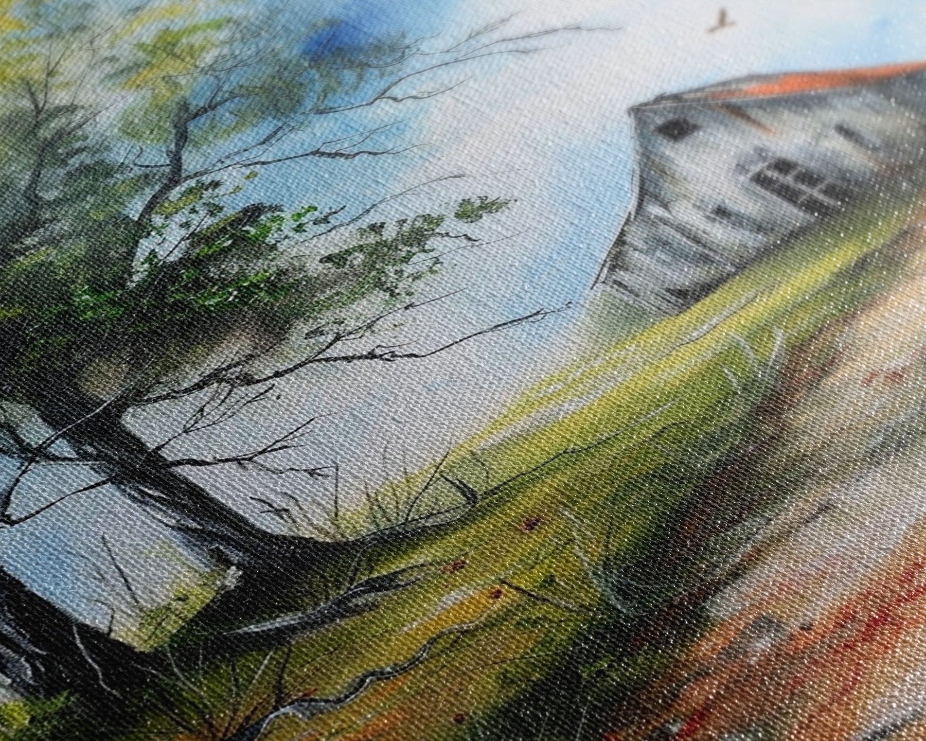 Most of our canvases are made in the USA, with the exception of canvases ordered with the light oak unstained frames, and any large canvases (24x48, 30x60, 16x48 and 20x60) ordered WITH a frame. These are temporarily made in and shipped from Europe, while we try to find a more consistent supplier in the USA.