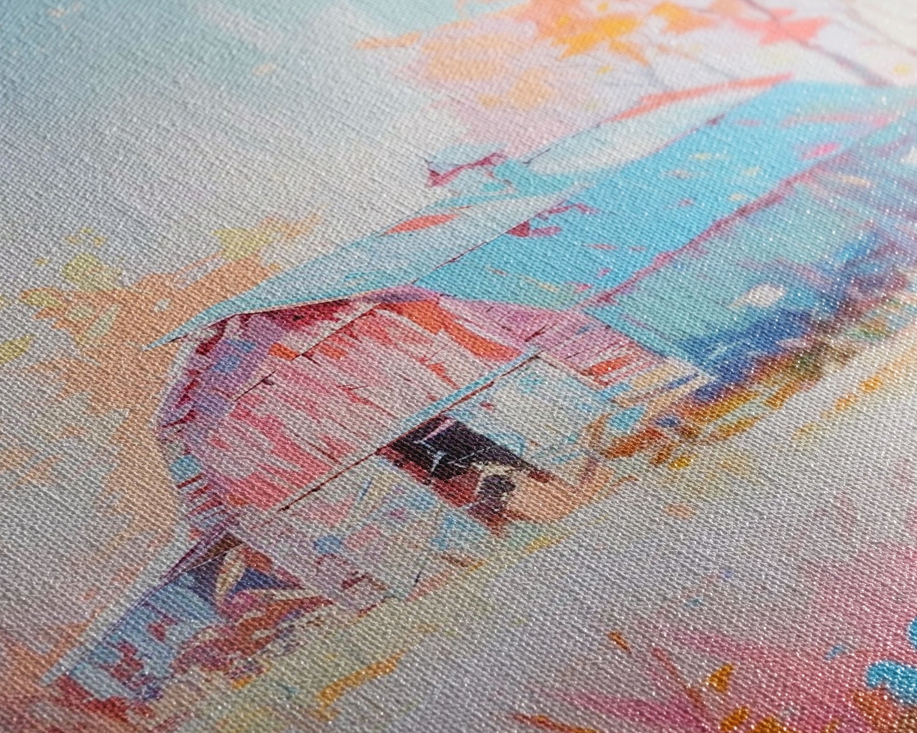 Most of our canvases are made in the USA, with the exception of canvases ordered with the light oak unstained frames, and any large canvases (24x48, 30x60, 16x48 and 20x60) ordered WITH a frame. These are temporarily made in and shipped from Europe, while we try to find a more consistent supplier in the USA.