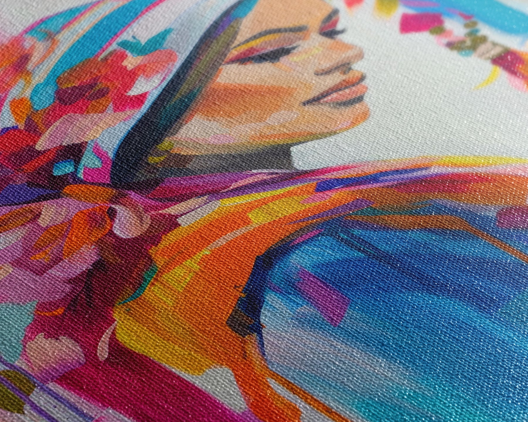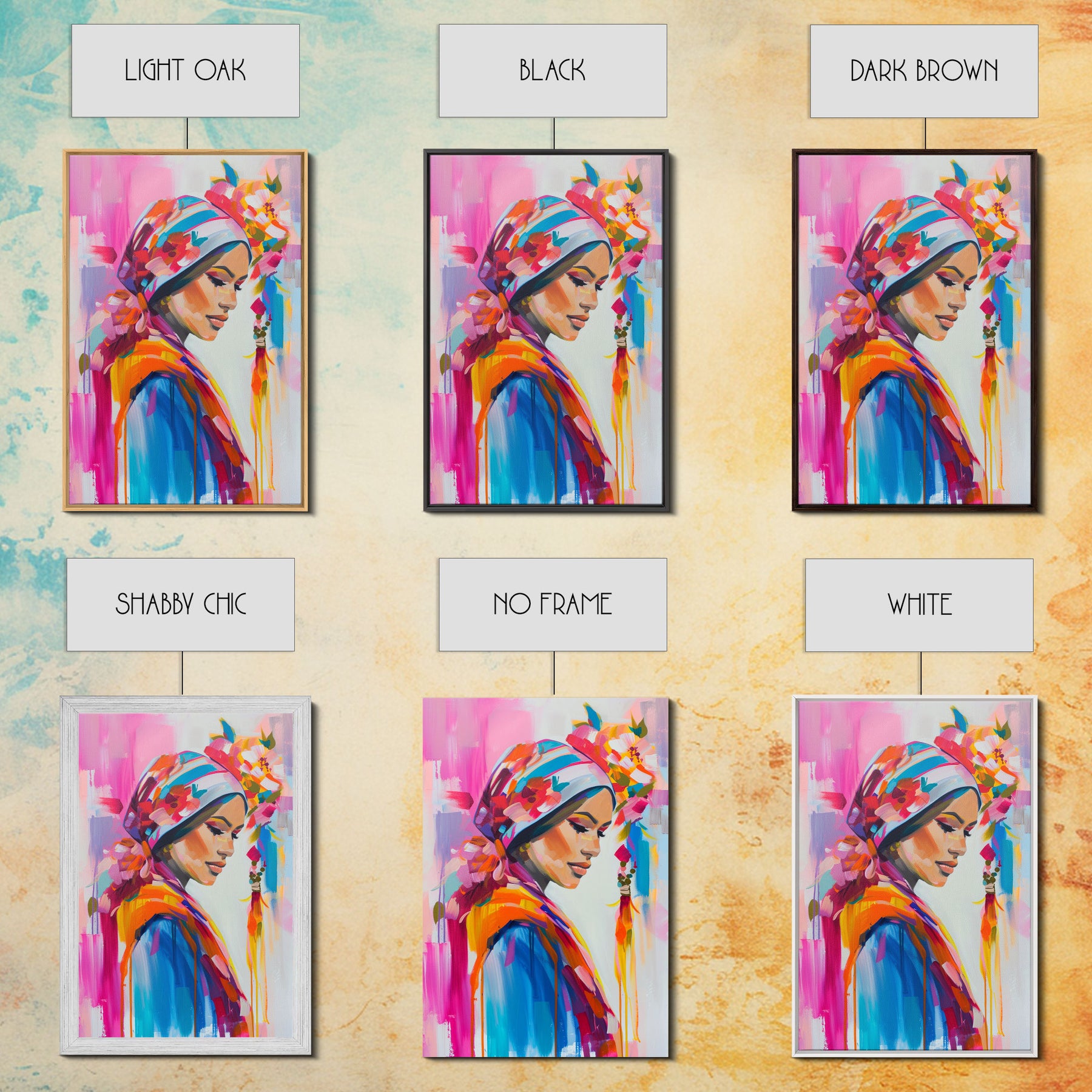 Portrait of Woman in Floral Headscarf Framed Canvas Print - Elegant Wall Art, Feminine Living Room Decor, Artistic Bedroom Art