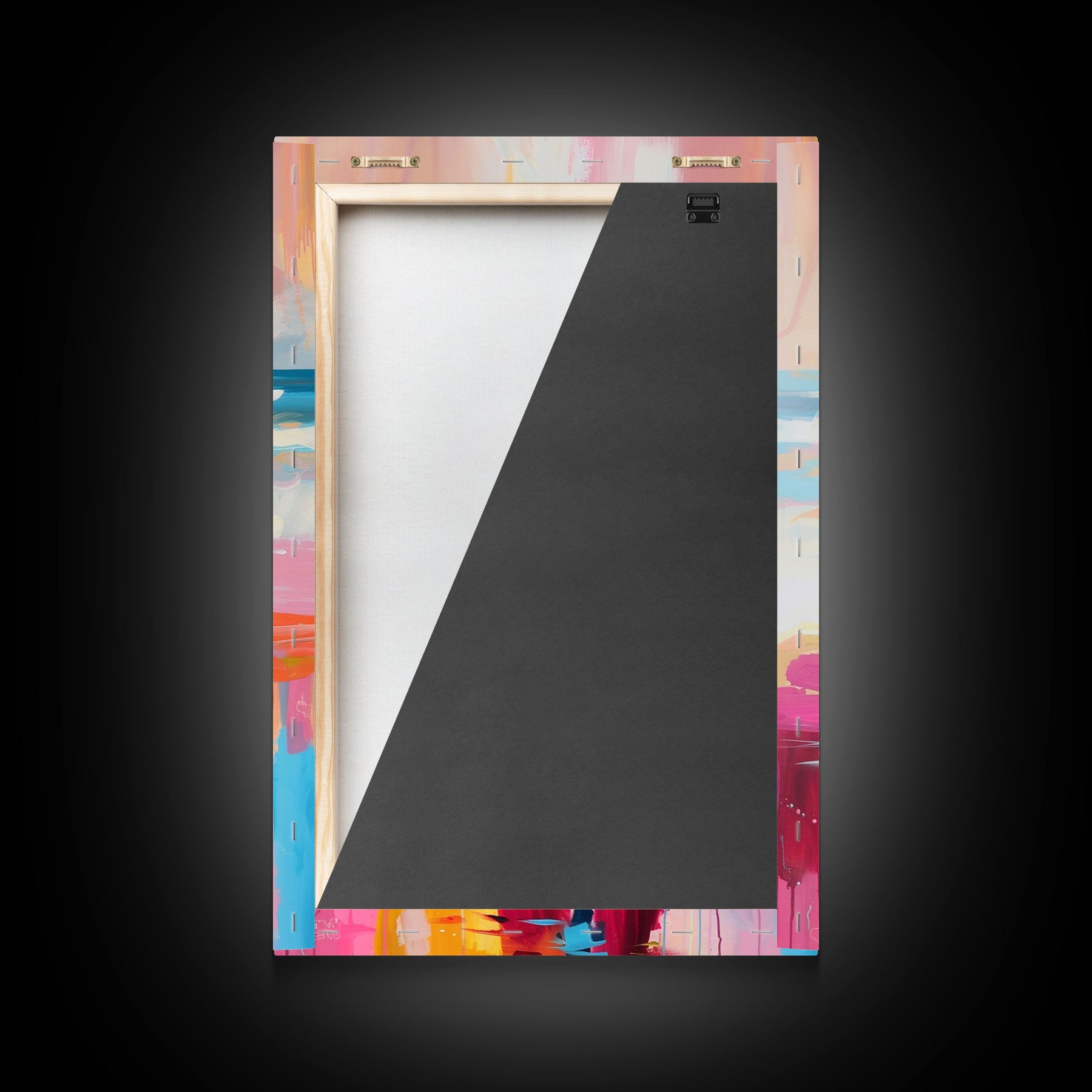 Horse on Beach in Bold Colors Framed Canvas Print - Beach Horse Wall Art, Colorful Living Room Decor, Bedroom Art, Coastal Equestrian Art