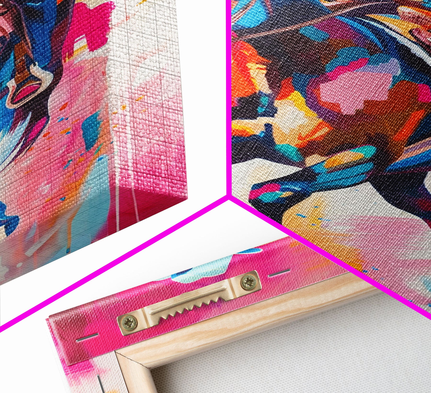Colorful Cowboy Riding Horse Art - Framed Canvas Print, Vibrant Western Decor, Unique Living Room Wall Art, Home Decor