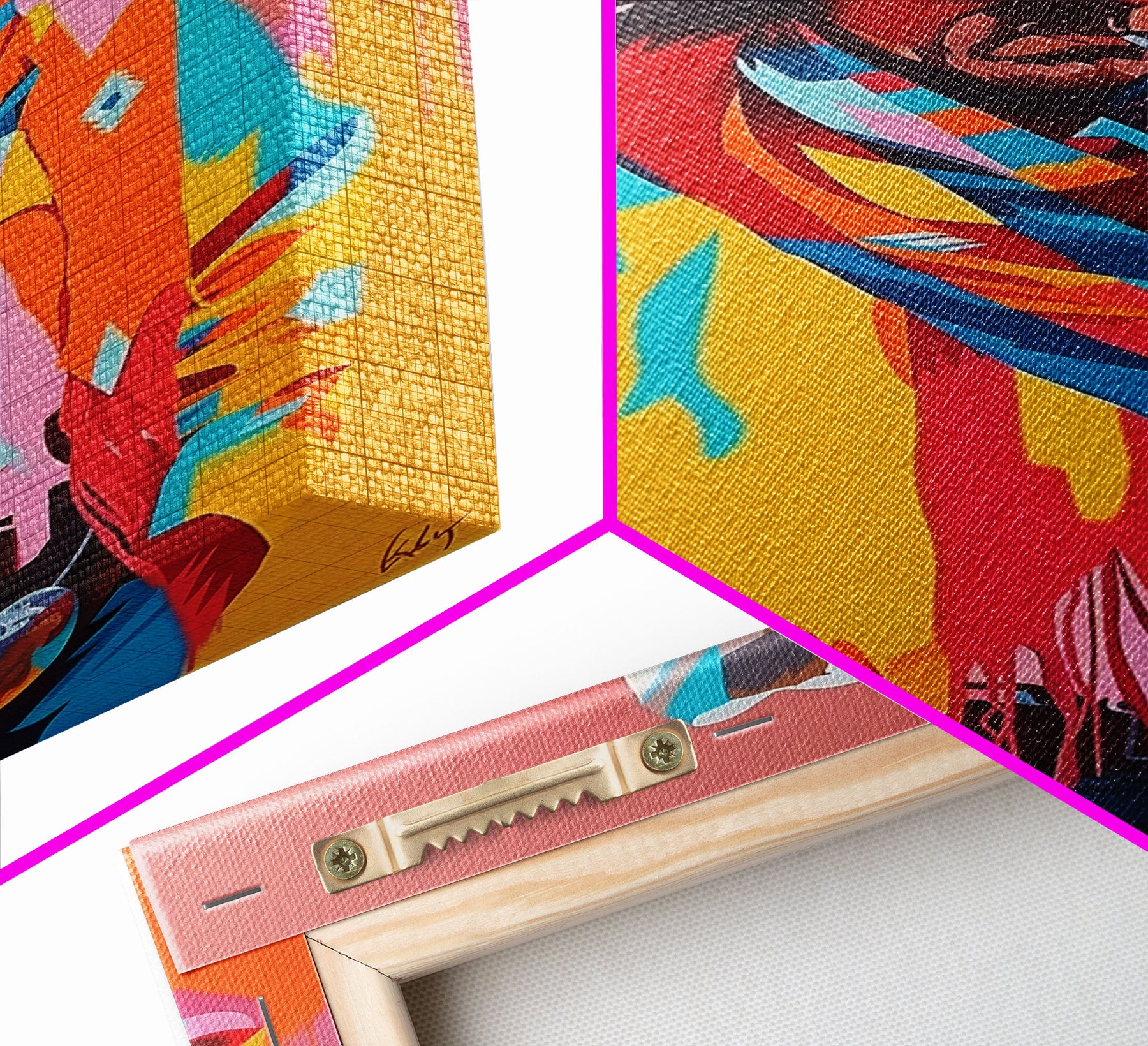 Hello and thank you for taking the time to view our modern high quality giclée artwork! We offer both posters and stretched canvas prints. Our posters are printed on Ultra Matte 60 lb / 230 GSM high quality photo paper, with a thickness of 10 mil. Our canvases are printed on museum grade 350 GSM canvas material with ECO friendly archival grade ink, then hand stretched and stapled over premium, FSC certified and shrink resistant frames. Designed and built to last a lifetime.