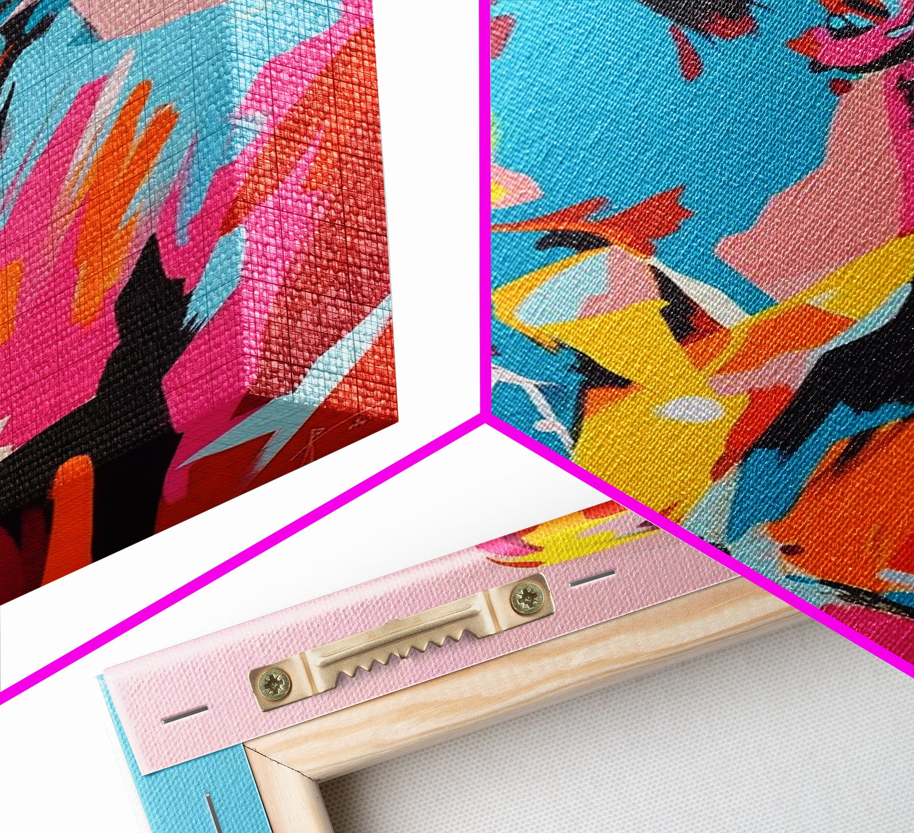 Hello and thank you for taking the time to view our modern high quality giclée artwork! We offer both posters and stretched canvas prints. Our posters are printed on Ultra Matte 60 lb / 230 GSM high quality photo paper, with a thickness of 10 mil. Our canvases are printed on museum grade 350 GSM canvas material with ECO friendly archival grade ink, then hand stretched and stapled over premium, FSC certified and shrink resistant frames. Designed and built to last a lifetime.