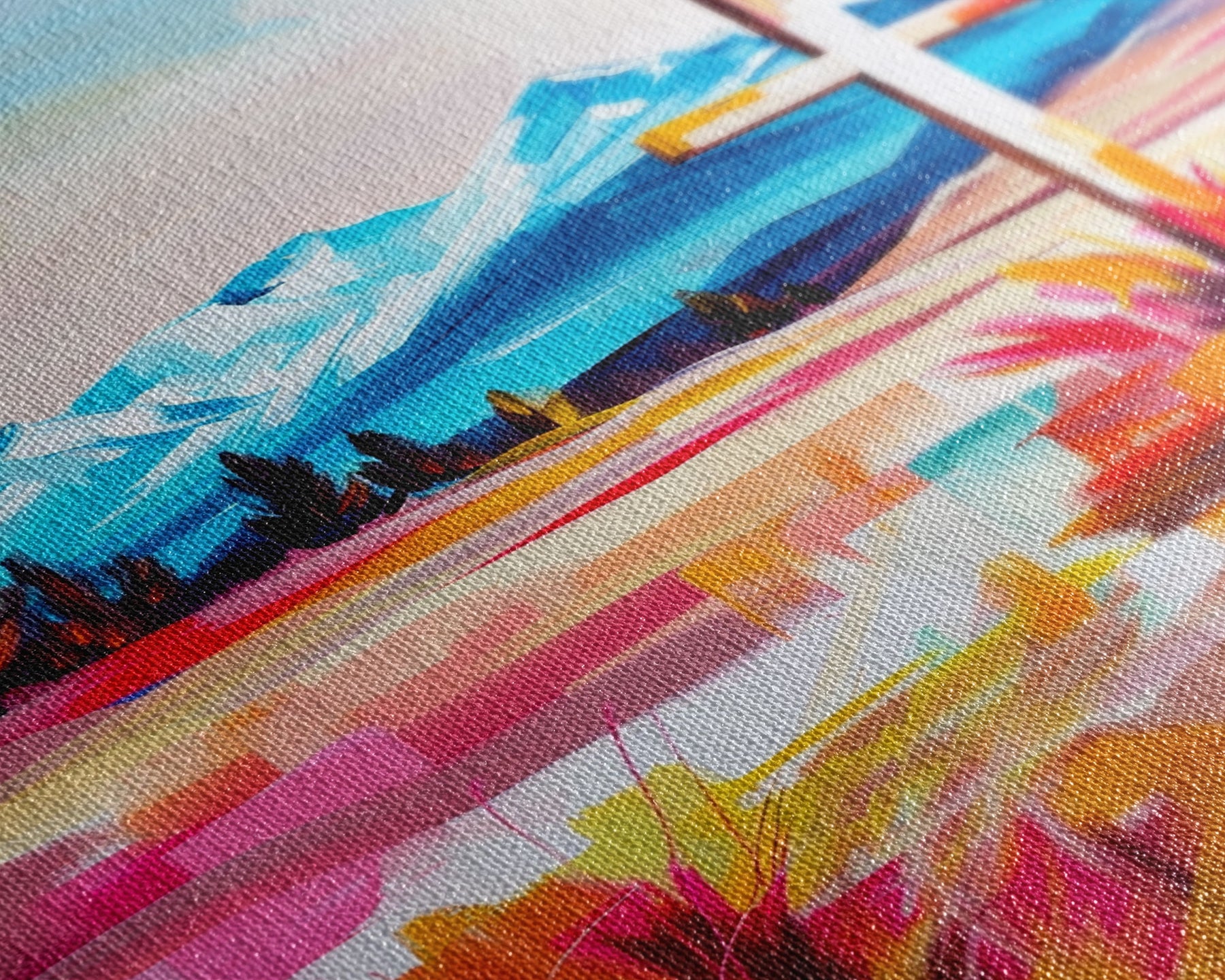 Most of our canvases are made in the USA, with the exception of canvases ordered with the light oak unstained frames, and any large canvases (24x48, 30x60, 16x48 and 20x60) ordered WITH a frame. These are temporarily made in and shipped from Europe, while we try to find a more consistent supplier in the USA.