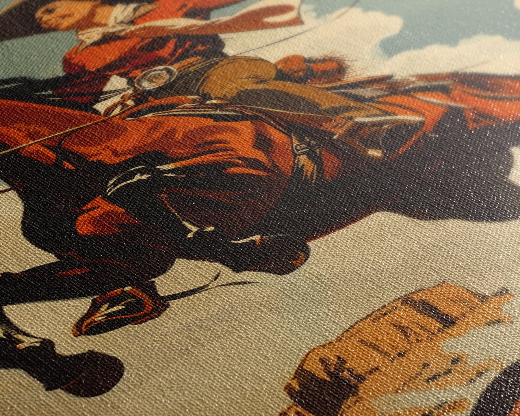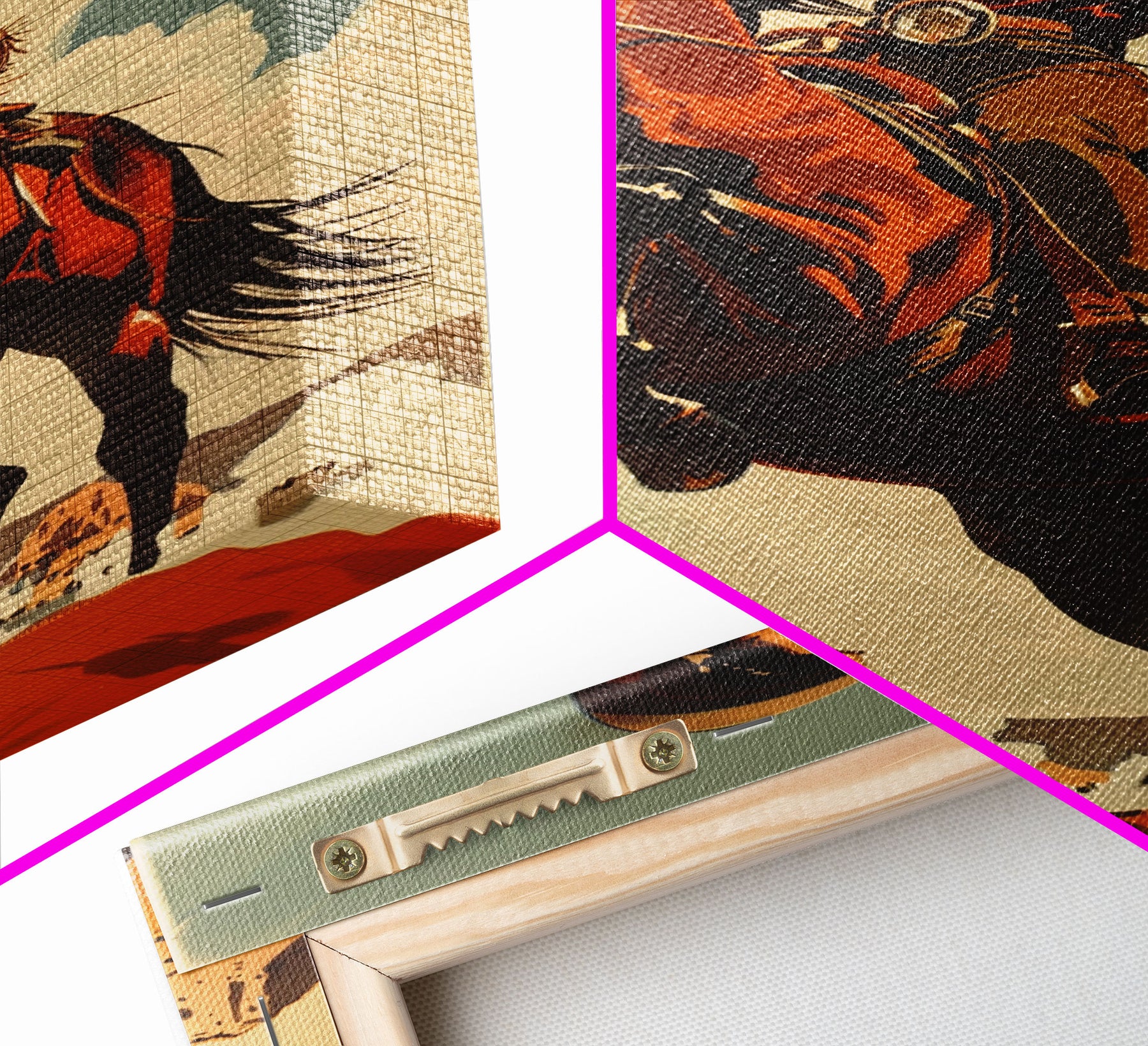 Elegant Cowgirl Commanding Horse | Framed Canvas Print | Western Wall Art | Living Room Decor | Rustic Home Decor