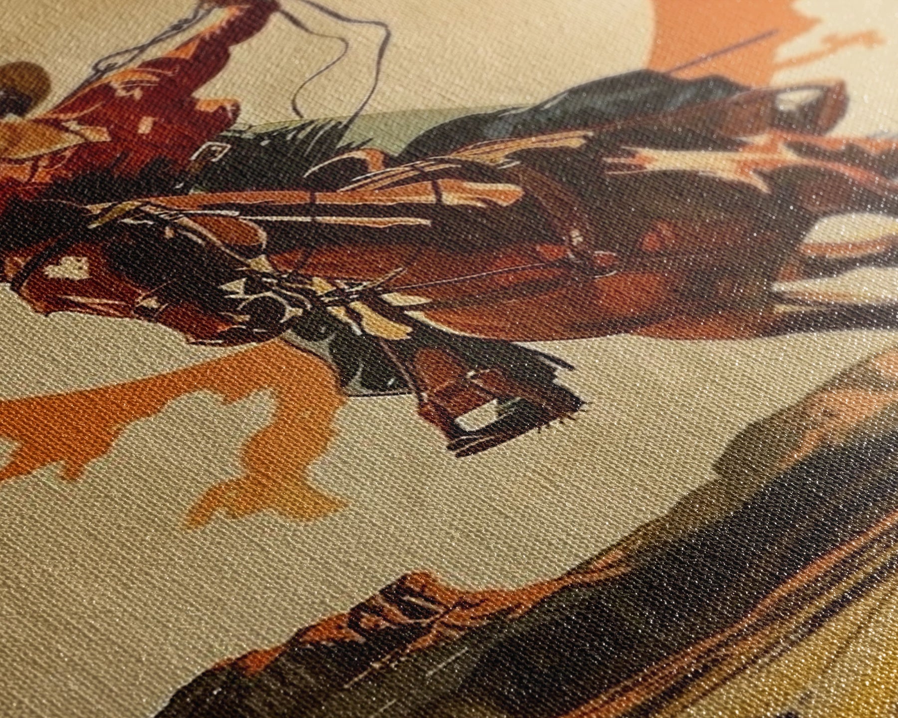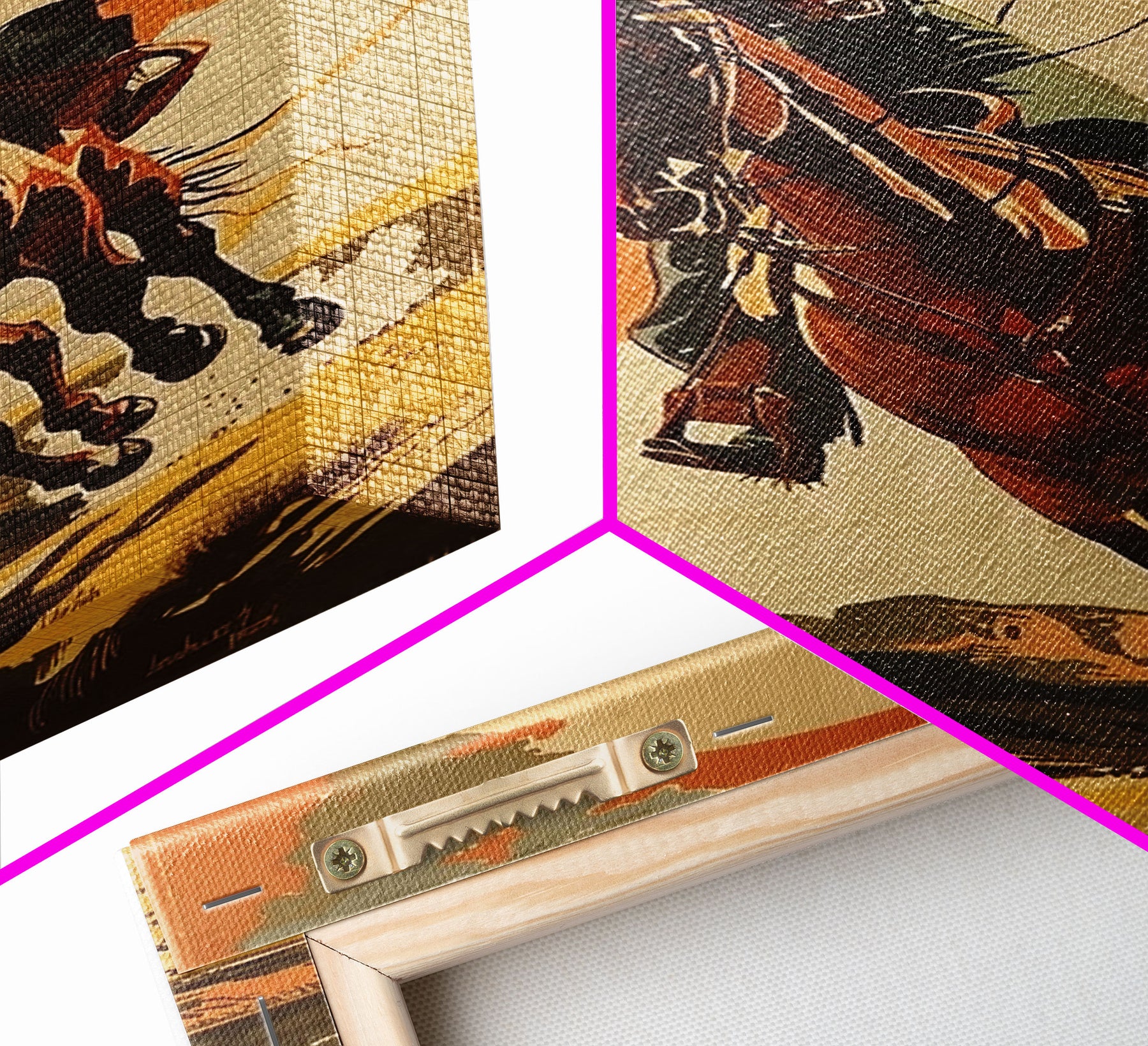 Spirited Cowgirl Racing Horse in Desert | Framed Canvas Print | Western Wall Art | Living Room Decor | Rustic Home Decor