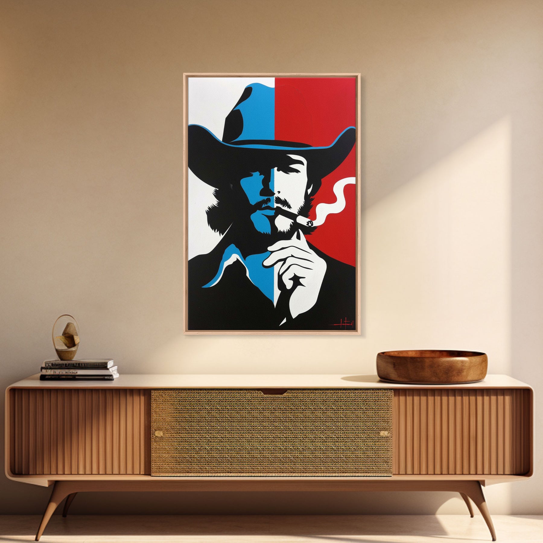 Iconic Cowboy Silhouette with Cigarette - Framed Canvas Print, Bold Western Decor, Living Room Art, Cowboy Wall Art for Home