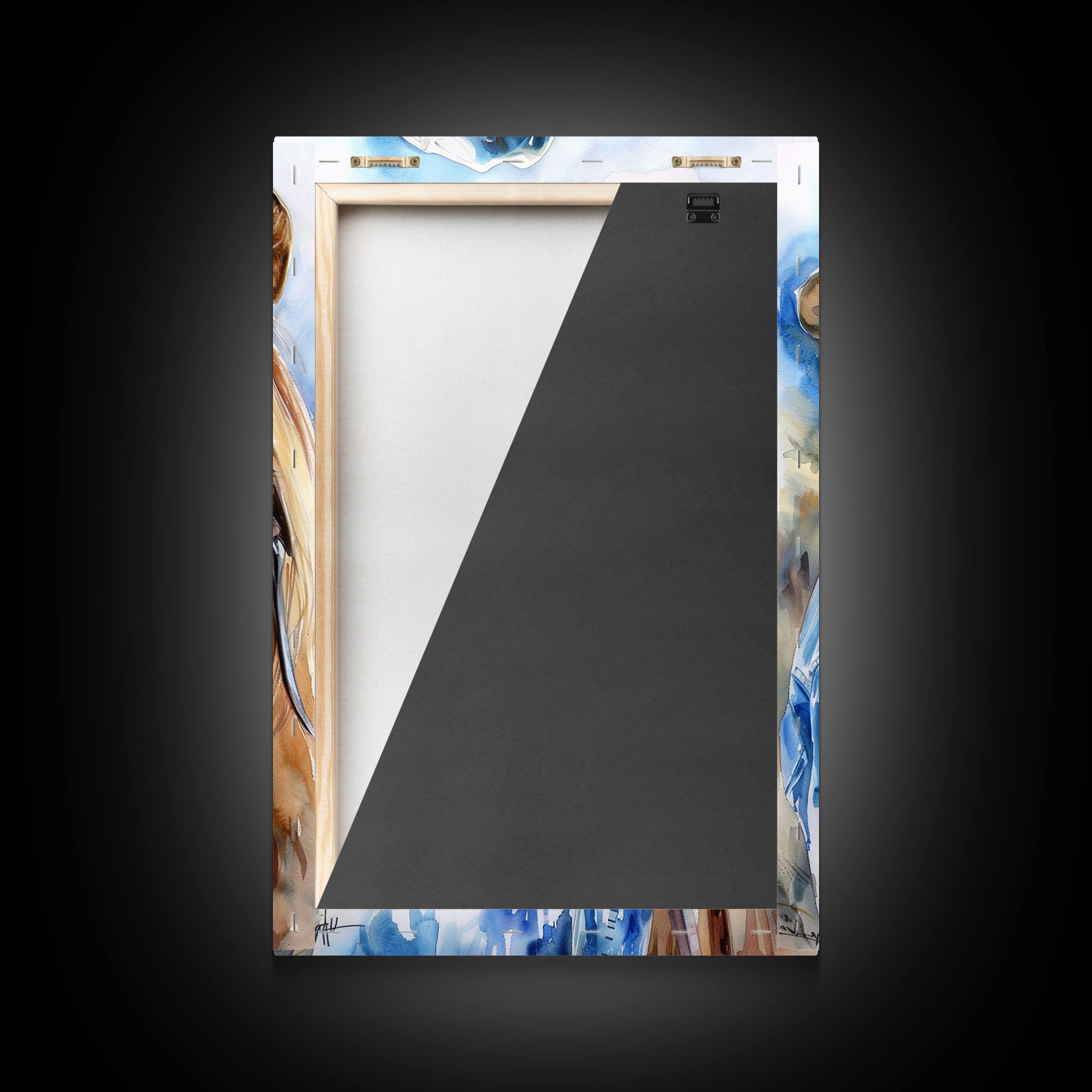 Cowgirl with Horse in Denim Outfit - Framed Canvas Print, Western Wall Art, Rustic Decor, Living Room and Bedroom Art Print
