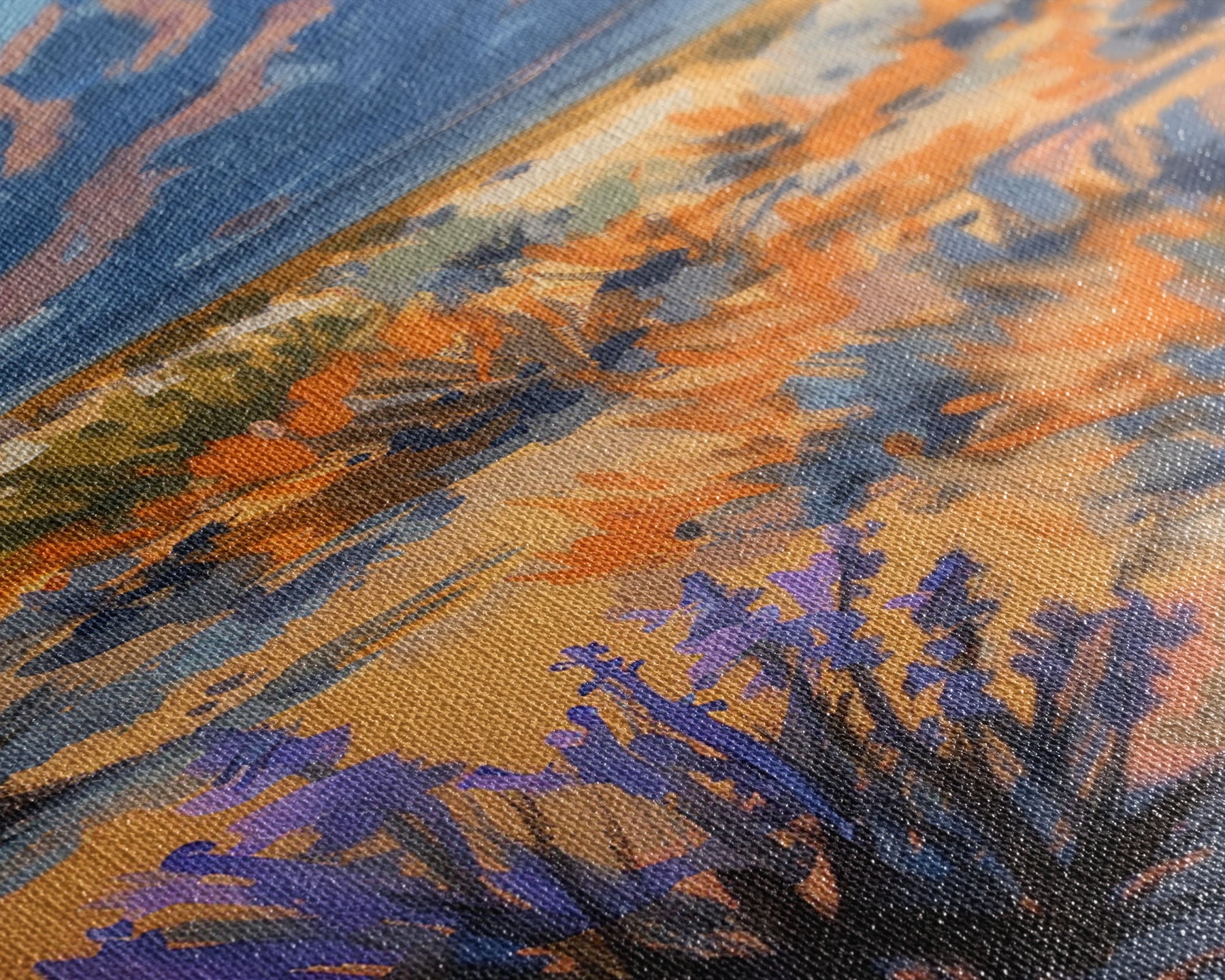 Most of our canvases are made in the USA, with the exception of canvases ordered with the light oak unstained frames, and any large canvases (24x48, 30x60, 16x48 and 20x60) ordered WITH a frame. These are temporarily made in and shipped from Europe, while we try to find a more consistent supplier in the USA.