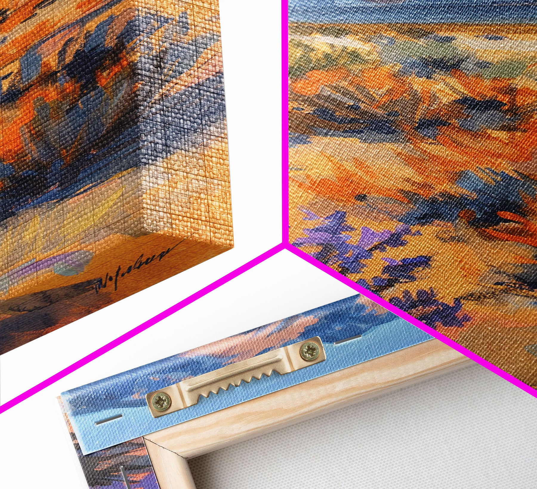 *Optional frames add a total of 1.5 inches to each dimension, for example a 10x20 canvas with a frame will be 11.5 by 21.5 inches total. All framed canvas are 1.5" total depth.