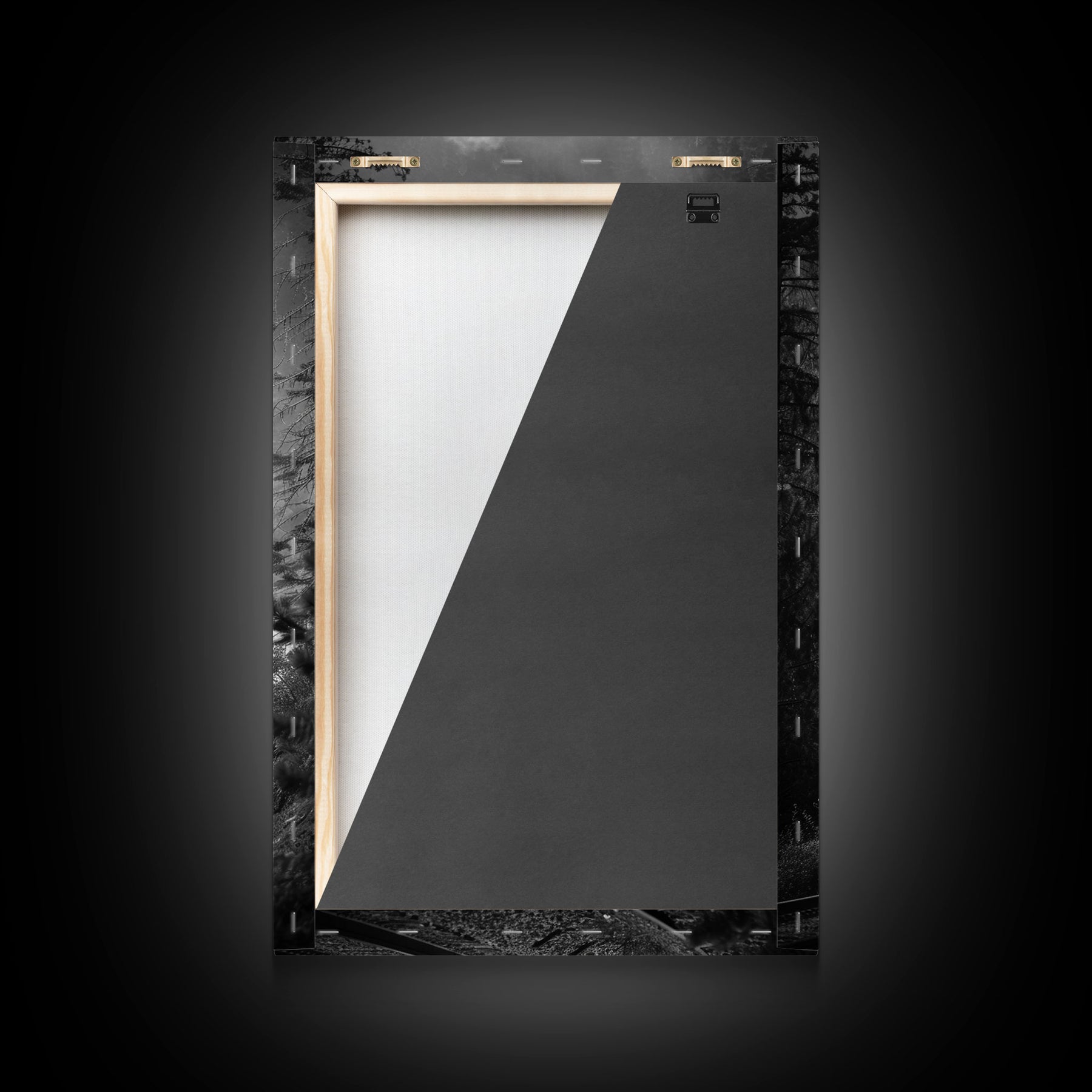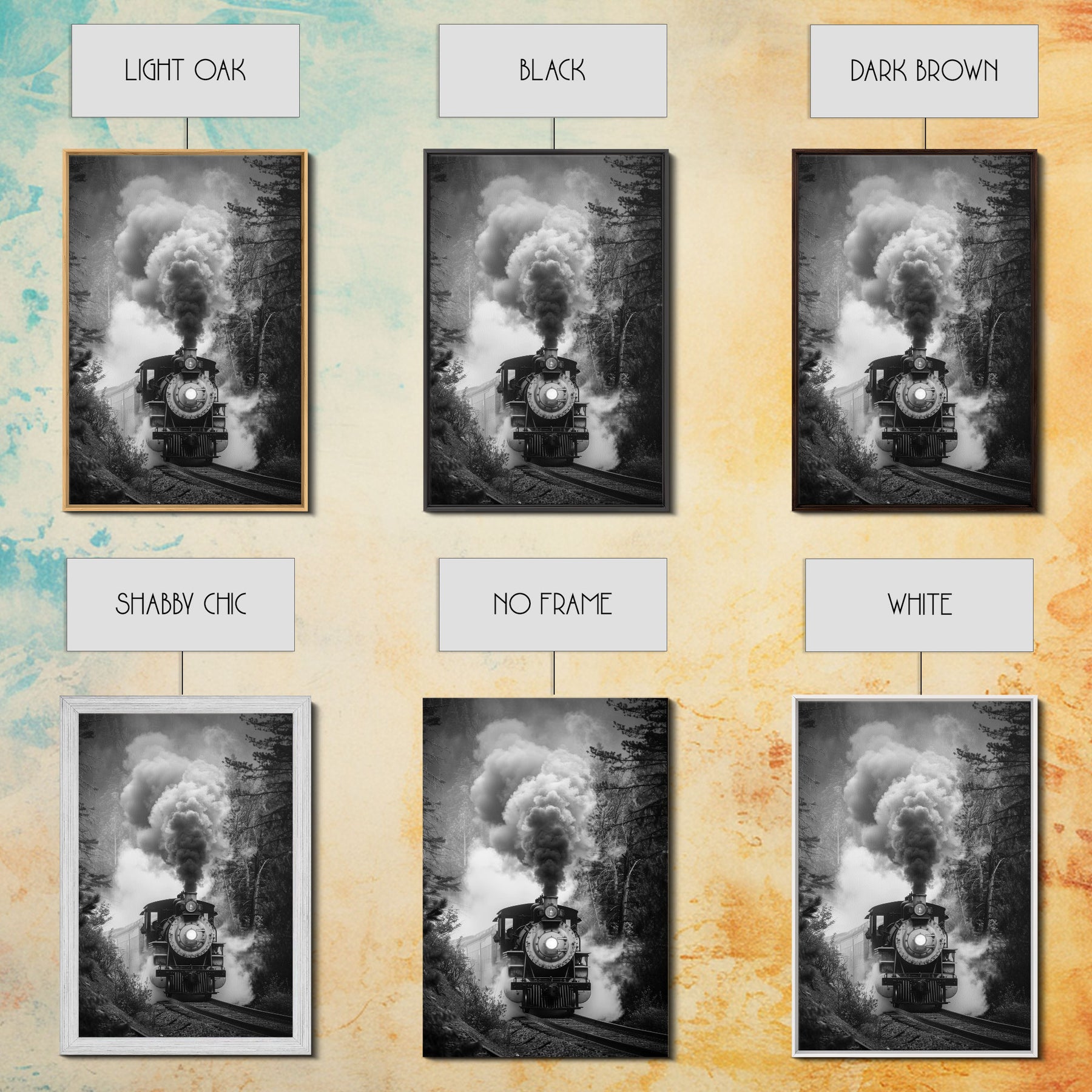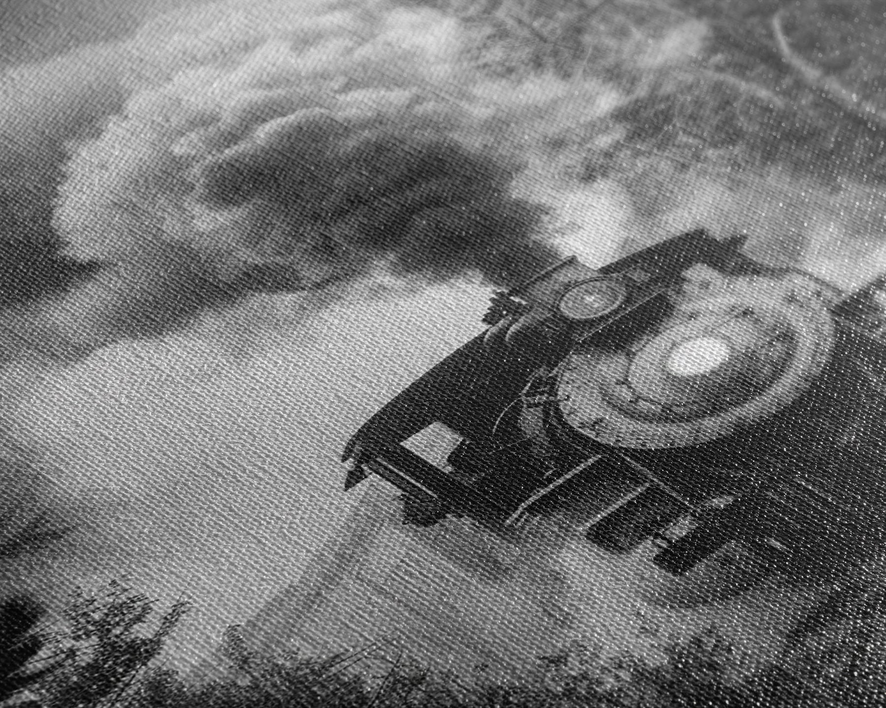 Steam Locomotive in the Forest Black and White Photography - Framed Canvas Print, Railroad Art, Vintage Train Wall Art for Home