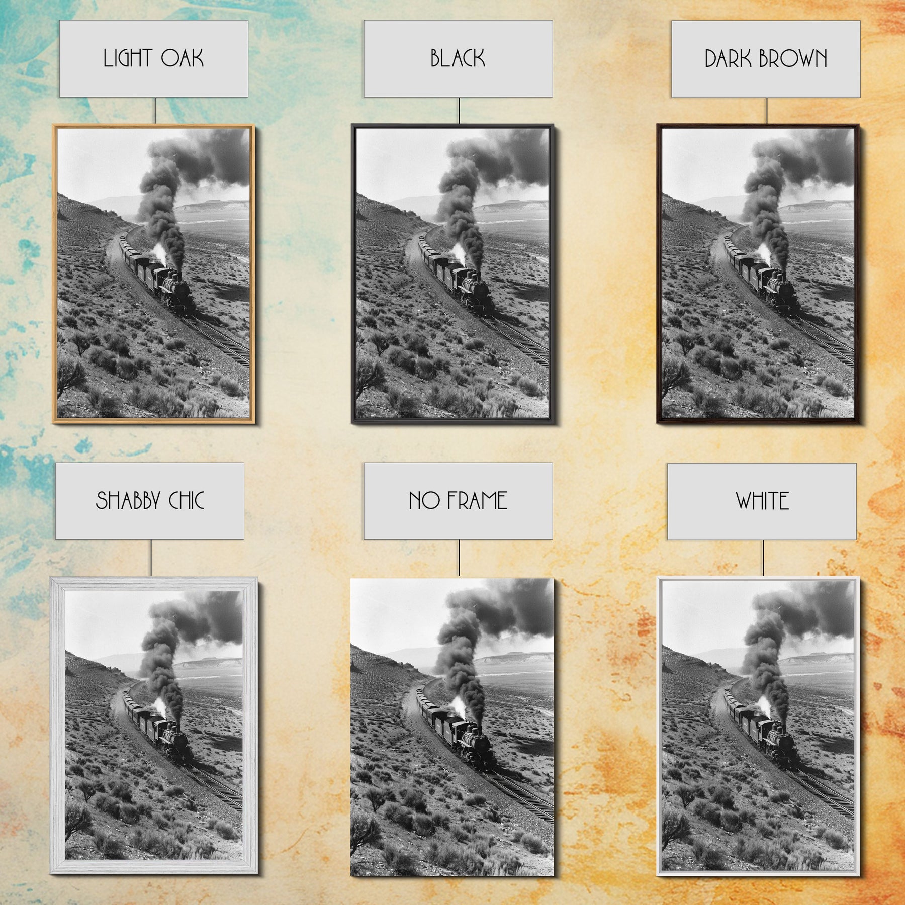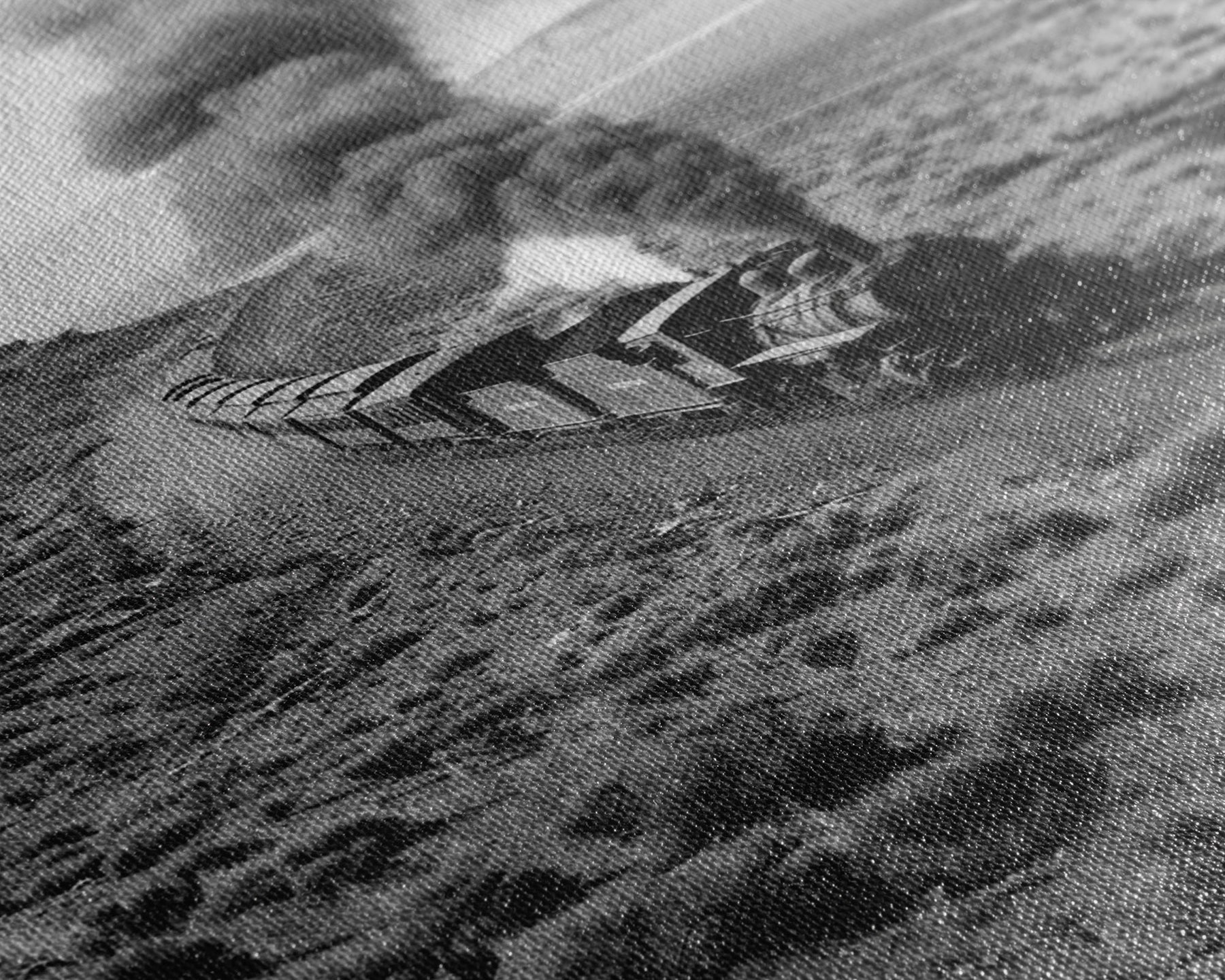 Train Journey Through the Desert Black and White Photography - Framed Canvas Print, Railroad Art, Rustic Train Wall Art Decor