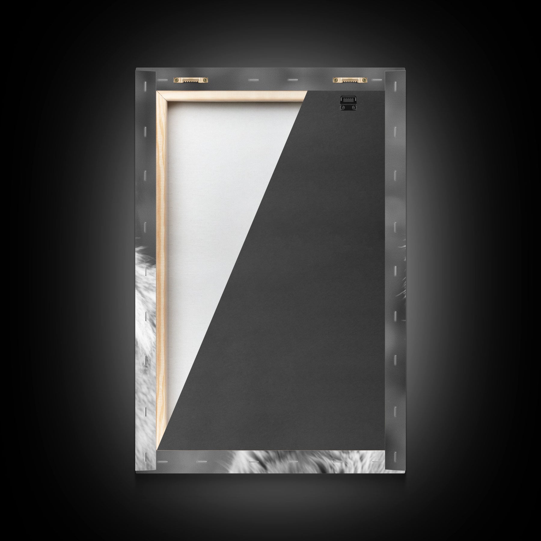 Wolf Portrait in Black and White Photography - Framed Canvas Print, Wildlife Photography, Rustic Wolf Art for Home Wall Decor