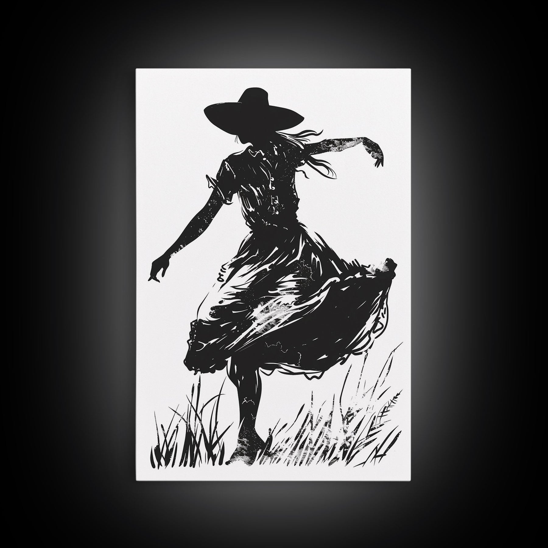 Country Girl Silhouette Art Print, Framed Canvas Western Decor, Vintage Cowgirl Artwork, Rustic Southwest Wall Art for Home
