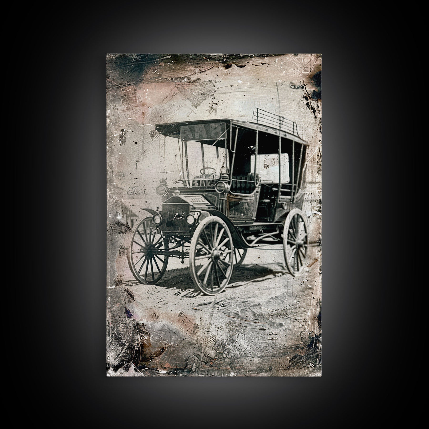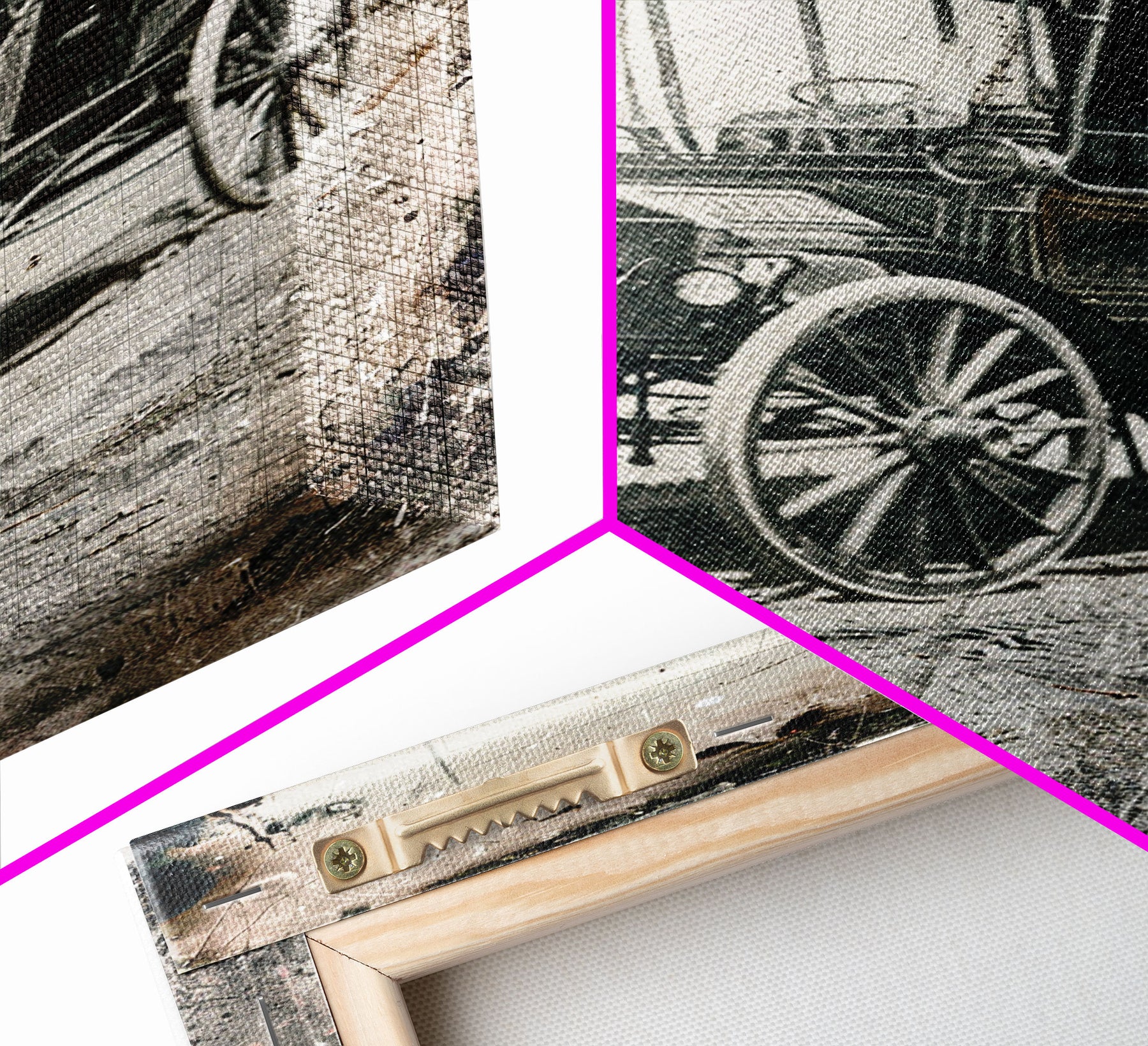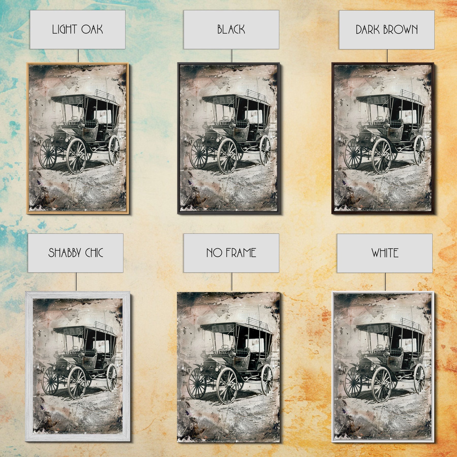 Antique Carriage Sepia Print - Framed Canvas Wall Art, Vintage Vehicle Decor for Living Room, Rustic Antique Car Artwork, Historical Art