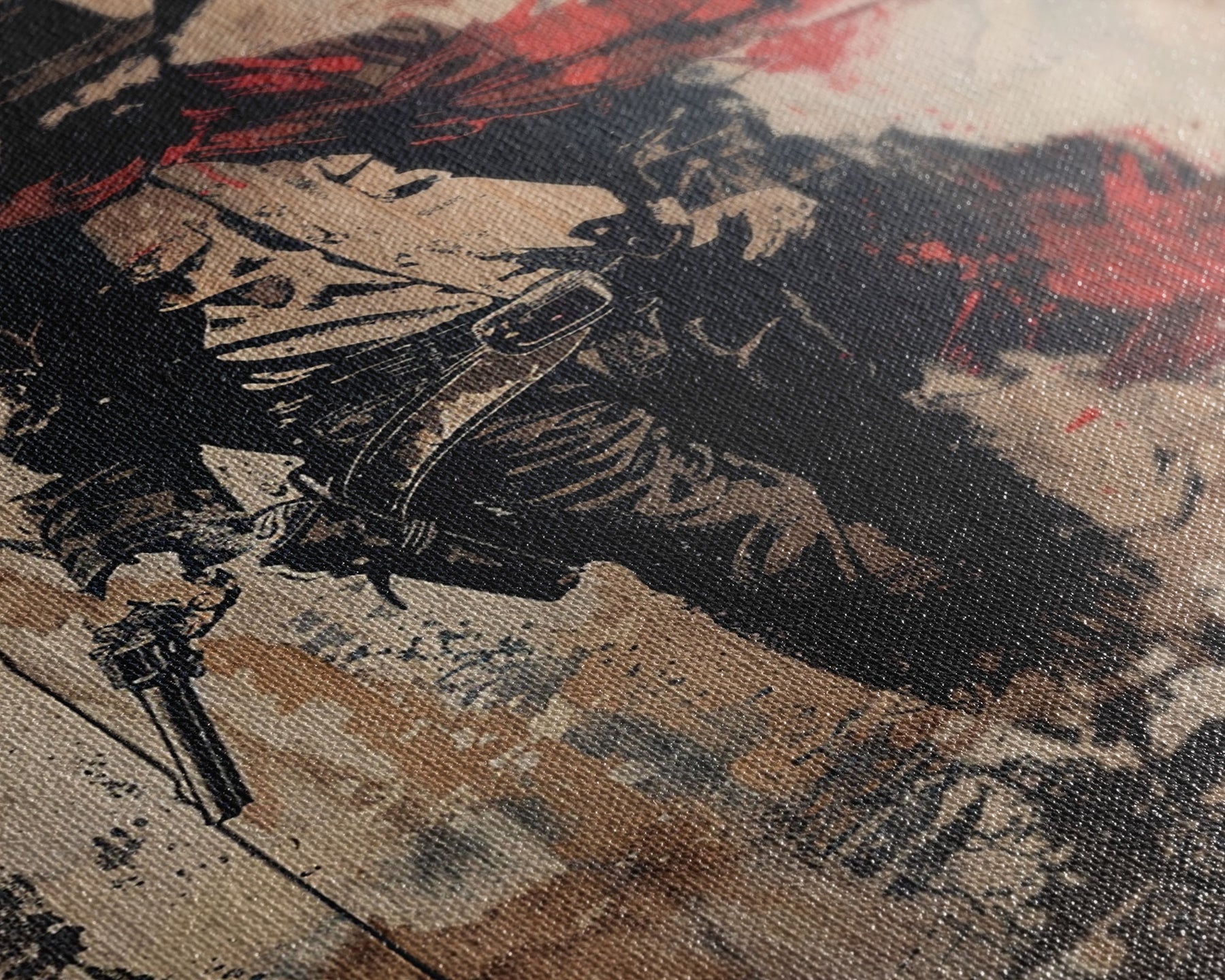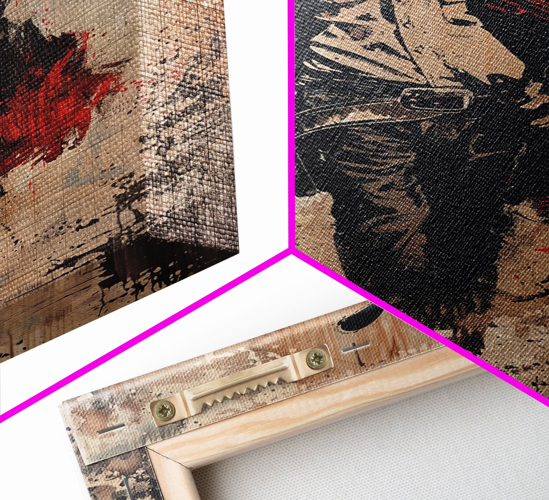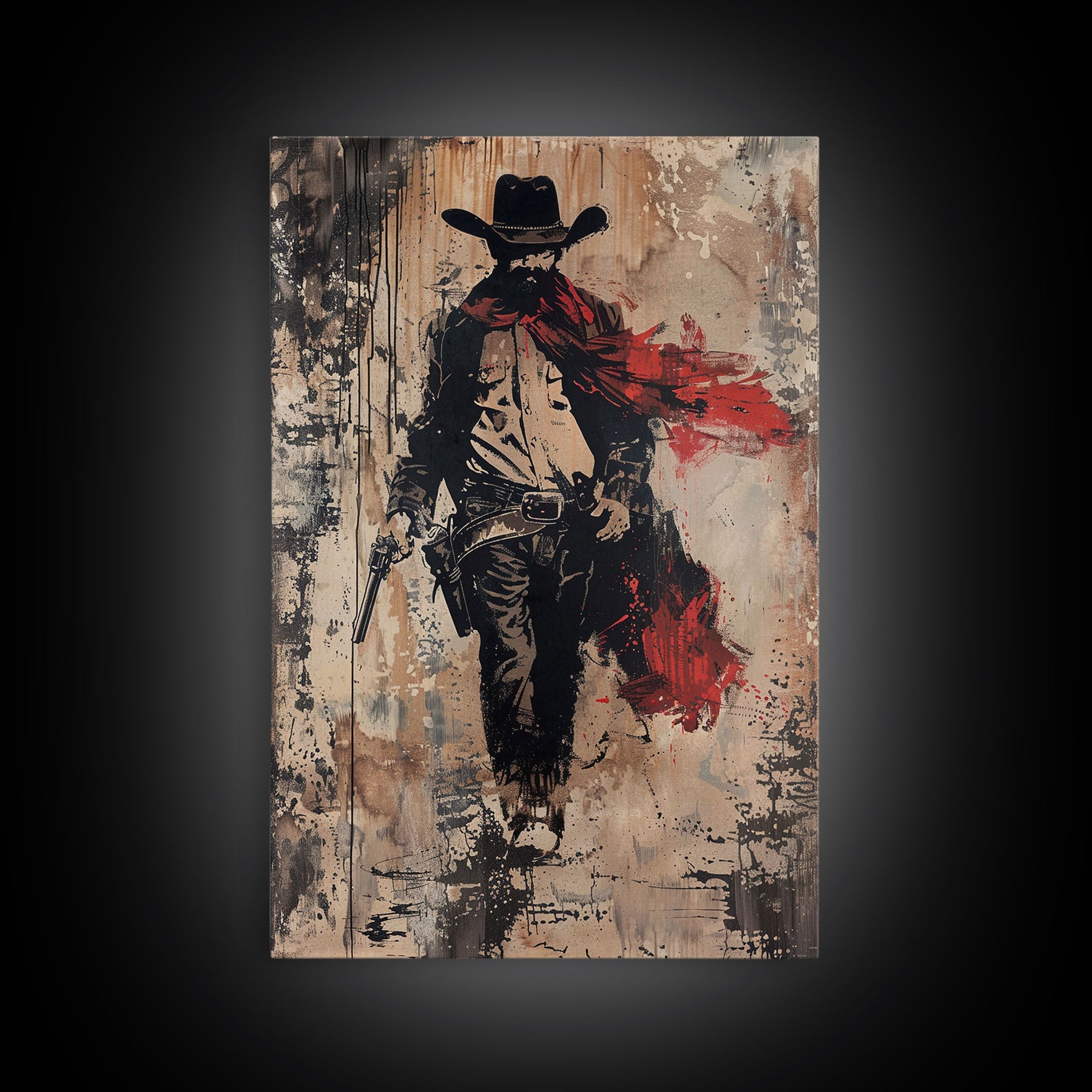 Cowboy with Red Scarf Art Print - Framed Canvas Western Wall Art, Rustic Cowboy Decor for Living Room, Vintage Western Artwork, Cowboy Art