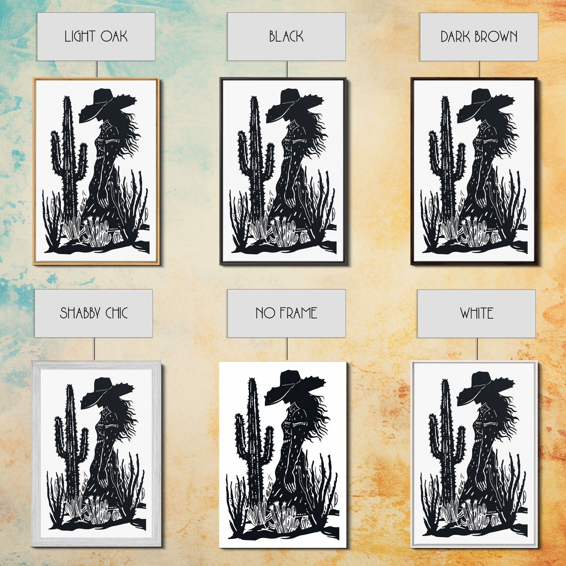 Cowgirl at Sunset Art Print, Western Silhouette Framed Canvas, Vintage Desert Scene, Rustic Western Home Decor, Unique Wall Art