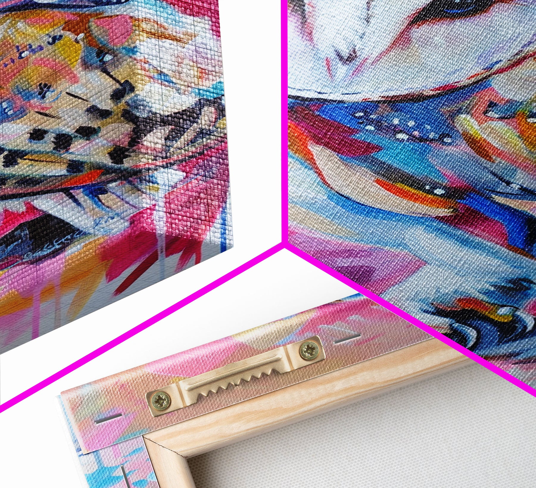 Hello and thank you for taking the time to view our modern high quality giclée artwork! We offer both posters and stretched canvas prints. Our posters are printed on Ultra Matte 60 lb / 230 GSM high quality photo paper, with a thickness of 10 mil. Our canvases are printed on museum grade 350 GSM canvas material with ECO friendly archival grade ink, then hand stretched and stapled over premium, FSC certified and shrink resistant frames. Designed and built to last a lifetime.