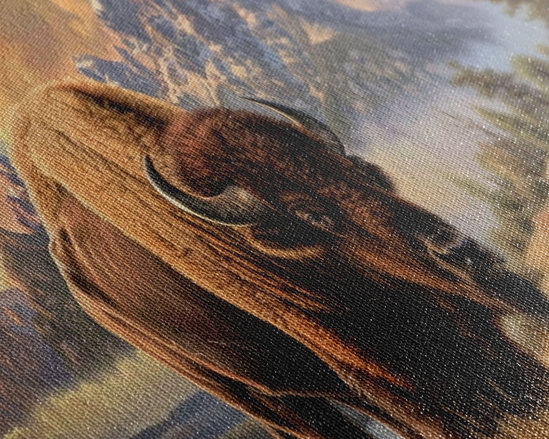Most of our canvases are made in the USA, with the exception of canvases ordered with the light oak unstained frames, and any large canvases (24x48, 30x60, 16x48 and 20x60) ordered WITH a frame. These are temporarily made in and shipped from Europe, while we try to find a more consistent supplier in the USA.