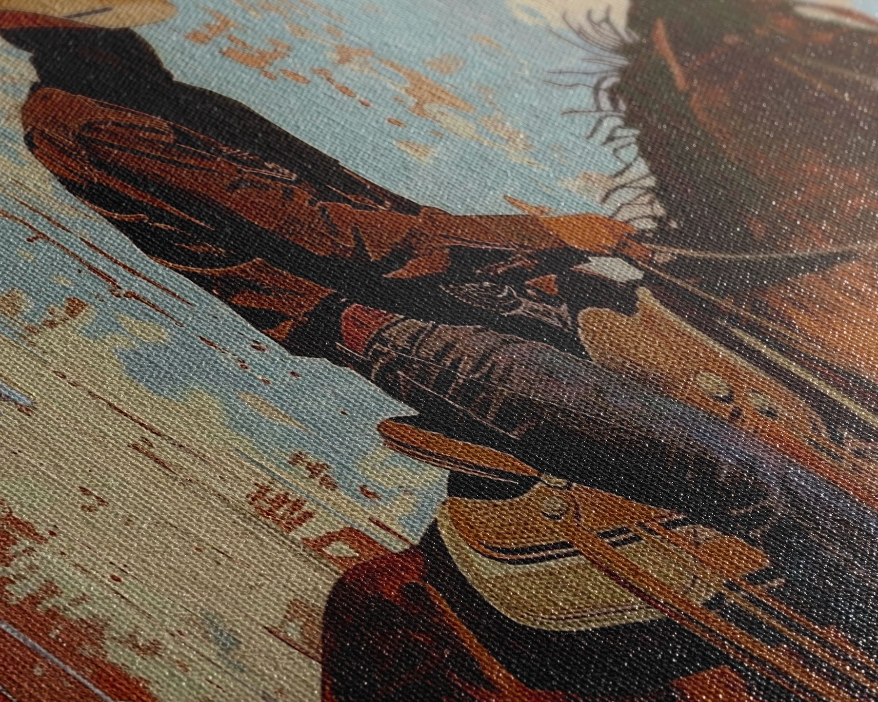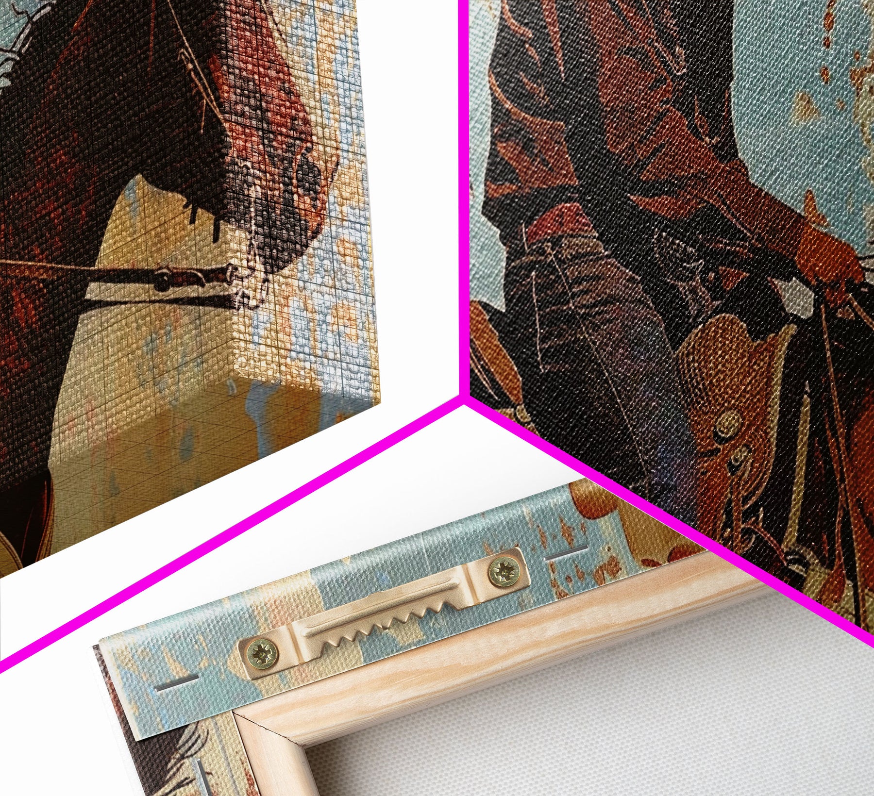 Cowboy Riding Horse in Abstract Style, Perfect Bedroom Art, Framed Canvas Print, Rustic Living Room Decor, Modern Home Decoration