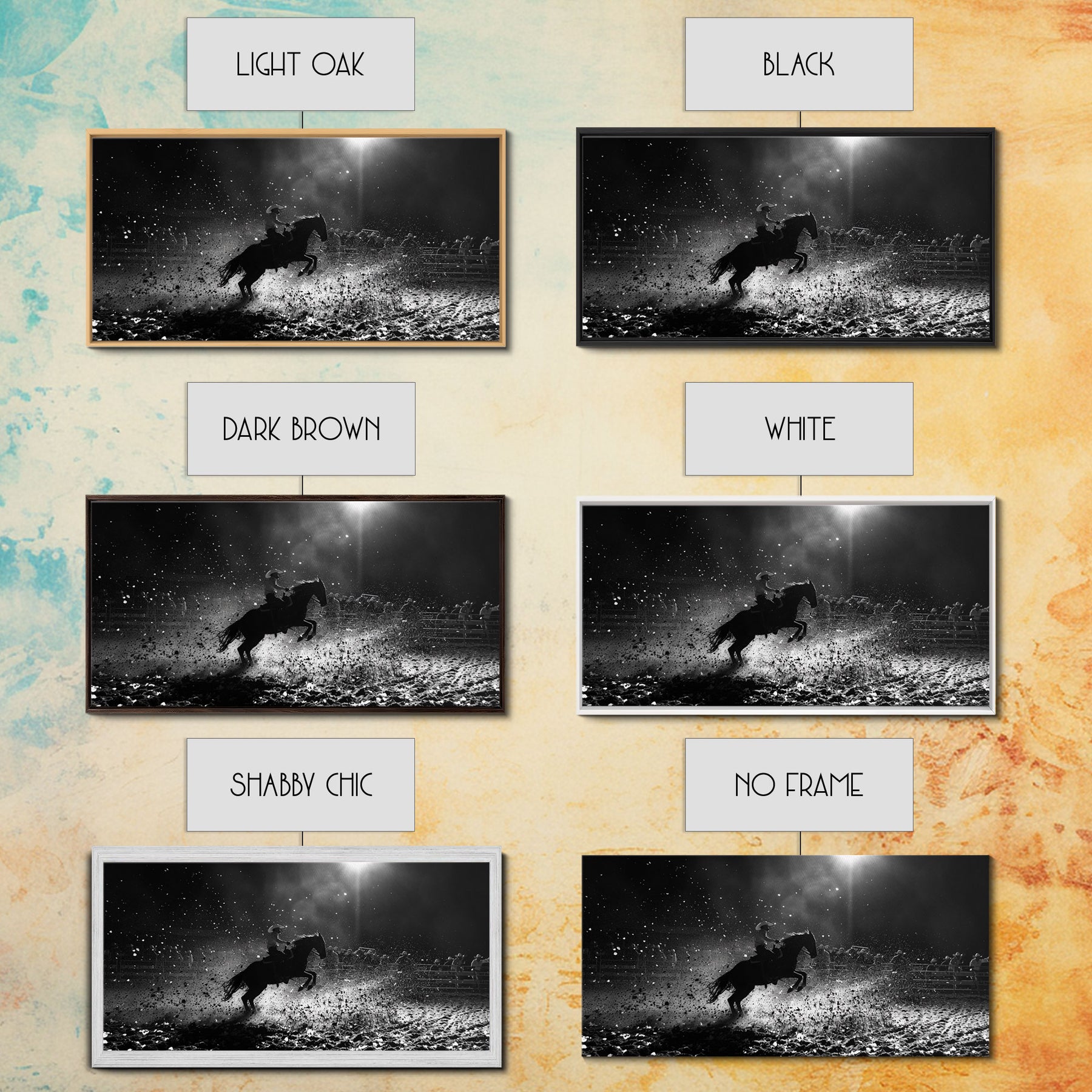 Action-Packed Rodeo Night Scene with Cowboy and Horse, Ideal for Framed Canvas Print, Living Room Wall Art, Perfect Bedroom Decor