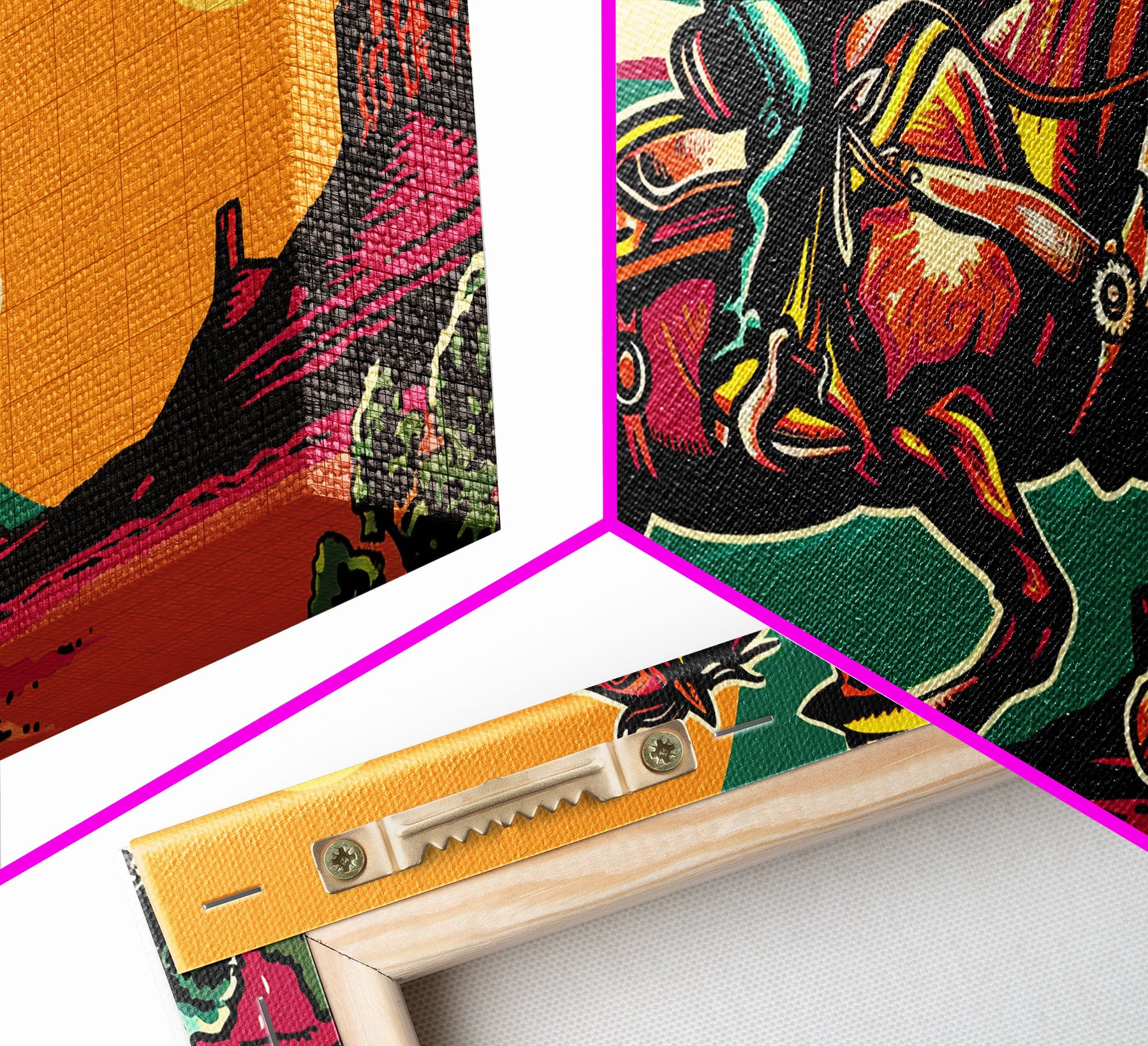 Hello and thank you for taking the time to view our modern high quality giclée artwork! We offer both posters and stretched canvas prints. Our posters are printed on Ultra Matte 60 lb / 230 GSM high quality photo paper, with a thickness of 10 mil. Our canvases are printed on museum grade 350 GSM canvas material with ECO friendly archival grade ink, then hand stretched and stapled over premium, FSC certified and shrink resistant frames. Designed and built to last a lifetime.