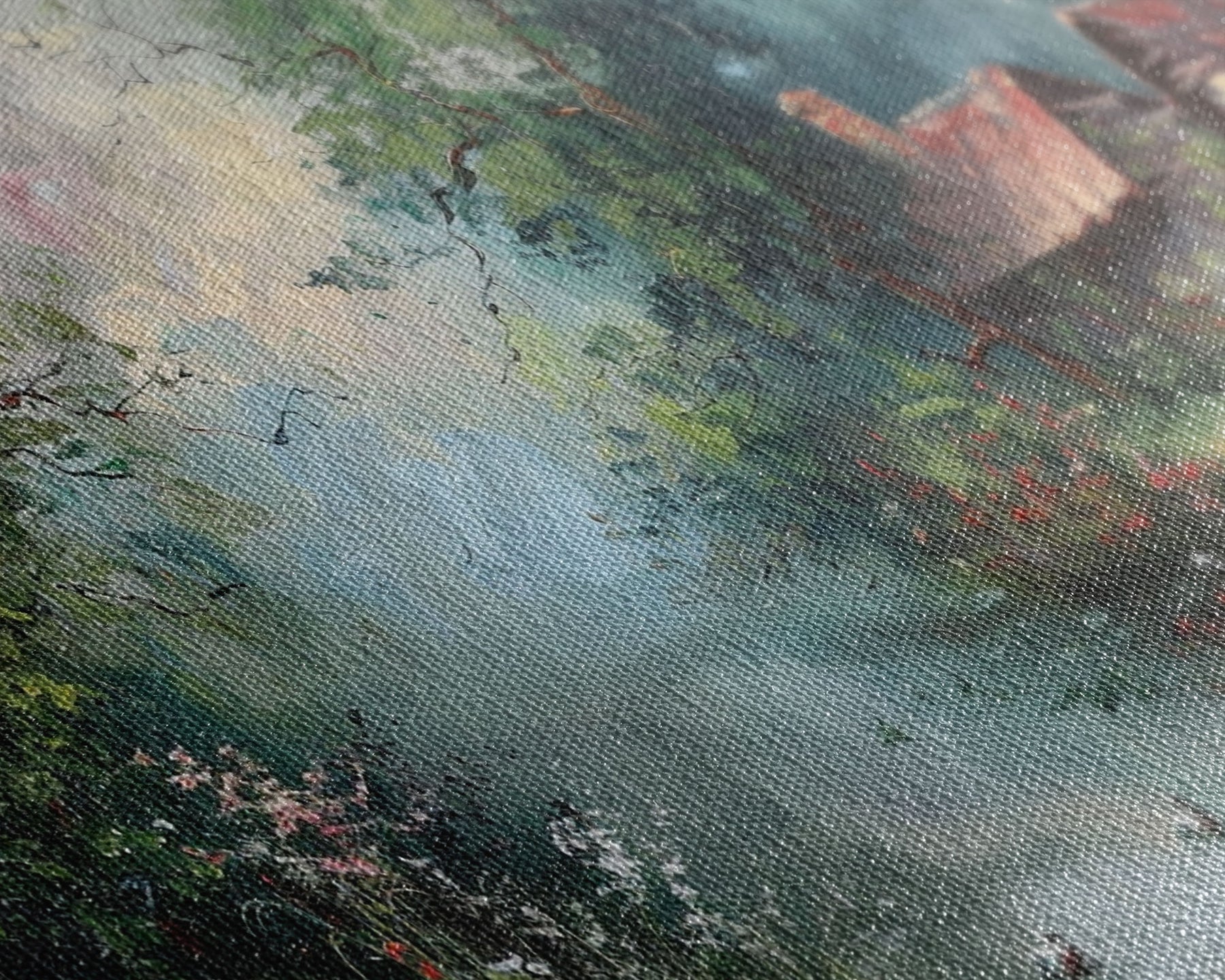 Most of our canvases are made in the USA, with the exception of canvases ordered with the light oak unstained frames, and any large canvases (24x48, 30x60, 16x48 and 20x60) ordered WITH a frame. These are temporarily made in and shipped from Europe, while we try to find a more consistent supplier in the USA.