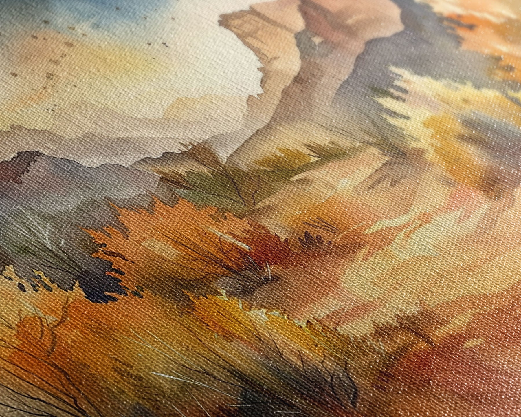 Most of our canvases are made in the USA, with the exception of canvases ordered with the light oak unstained frames, and any large canvases (24x48, 30x60, 16x48 and 20x60) ordered WITH a frame. These are temporarily made in and shipped from Europe, while we try to find a more consistent supplier in the USA.