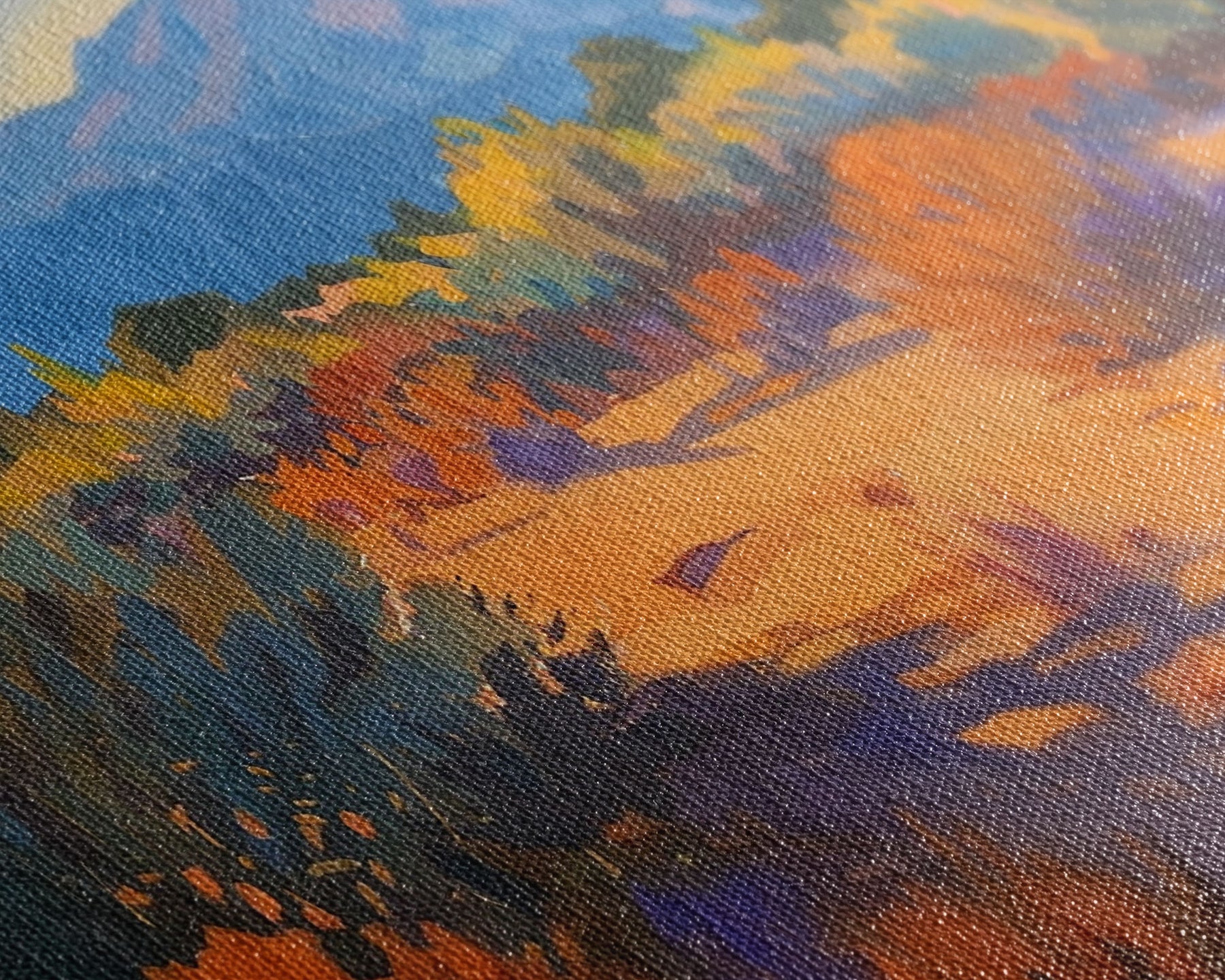 Most of our canvases are made in the USA, with the exception of canvases ordered with the light oak unstained frames, and any large canvases (24x48, 30x60, 16x48 and 20x60) ordered WITH a frame. These are temporarily made in and shipped from Europe, while we try to find a more consistent supplier in the USA.