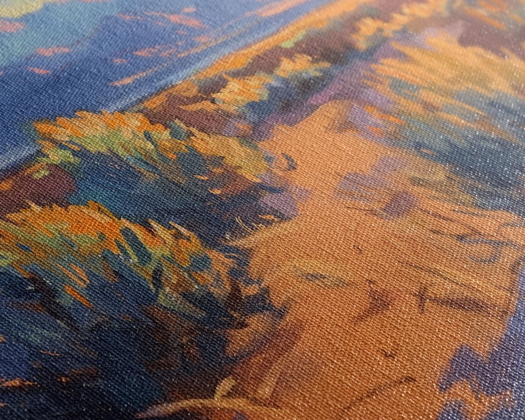 Most of our canvases are made in the USA, with the exception of canvases ordered with the light oak unstained frames, and any large canvases (24x48, 30x60, 16x48 and 20x60) ordered WITH a frame. These are temporarily made in and shipped from Europe, while we try to find a more consistent supplier in the USA.