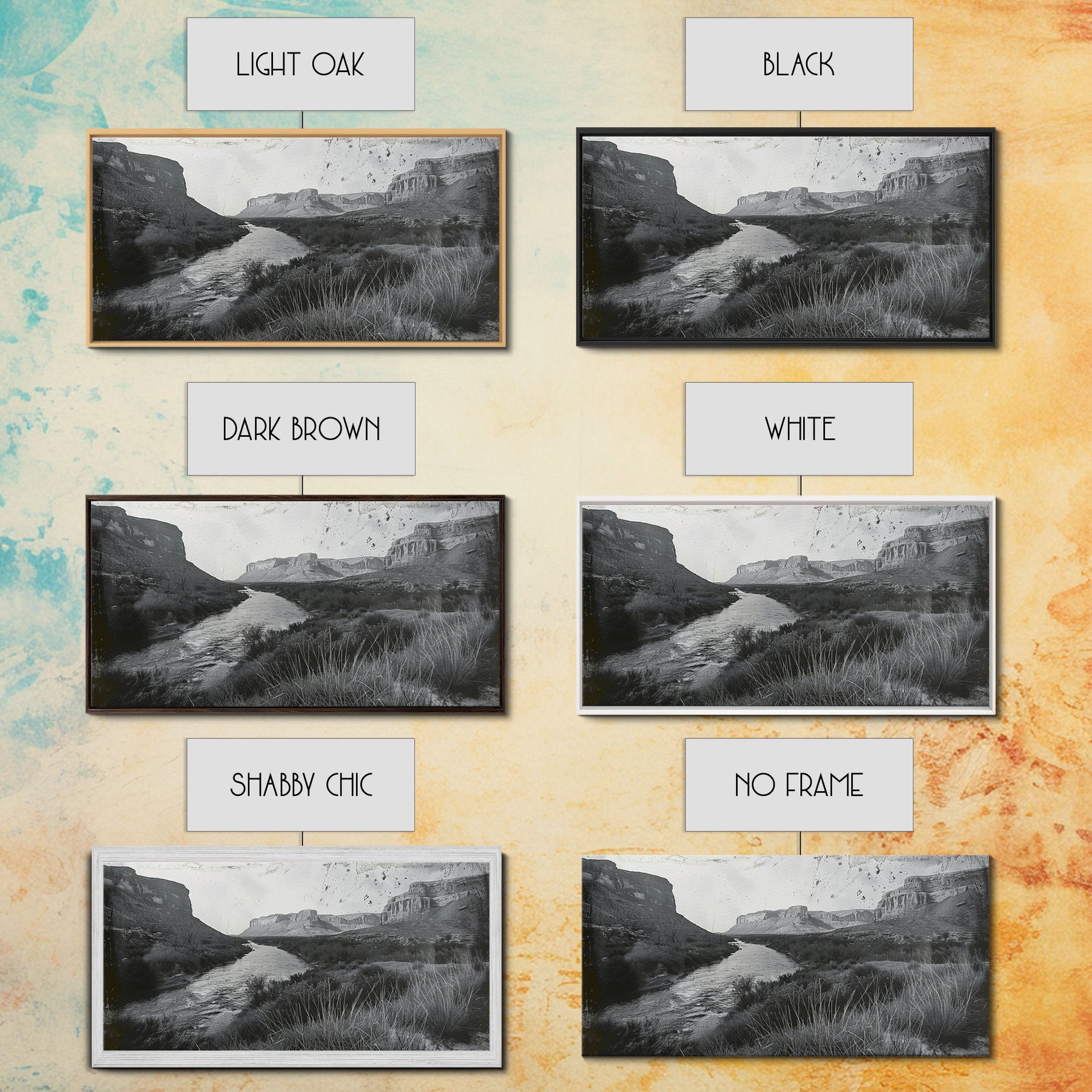 *Optional frames add a total of 1.5 inches to each dimension, for example a 10x20 canvas with a frame will be 11.5 by 21.5 inches total. All framed canvas are 1.5" total depth.