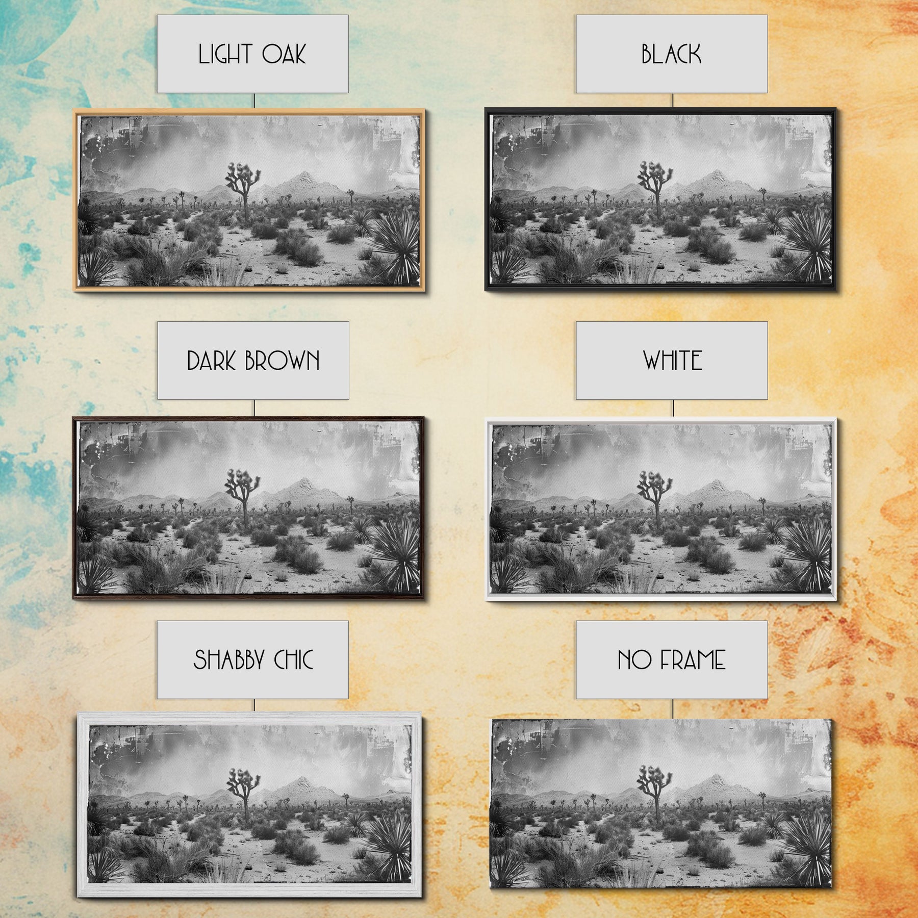 Desolate Desert with Joshua Trees, Framed Canvas Print for Living Room Decor, Ideal for Bedroom Wall Art, Rustic Western Scene
