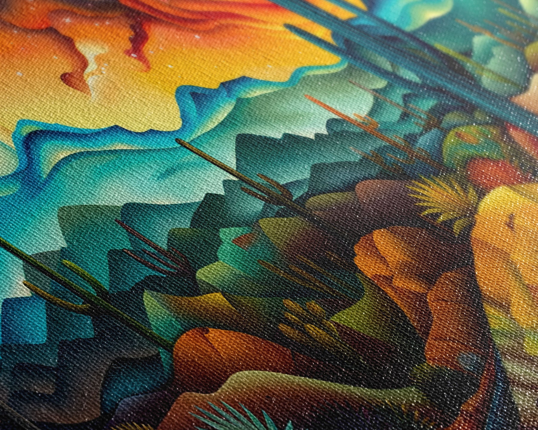 Most of our canvases are made in the USA, with the exception of canvases ordered with the light oak unstained frames, and any large canvases (24x48, 30x60, 16x48 and 20x60) ordered WITH a frame. These are temporarily made in and shipped from Europe, while we try to find a more consistent supplier in the USA.