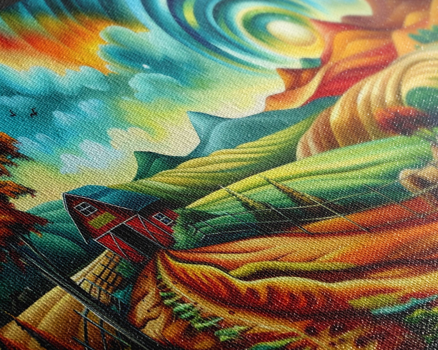 Most of our canvases are made in the USA, with the exception of canvases ordered with the light oak unstained frames, and any large canvases (24x48, 30x60, 16x48 and 20x60) ordered WITH a frame. These are temporarily made in and shipped from Europe, while we try to find a more consistent supplier in the USA.