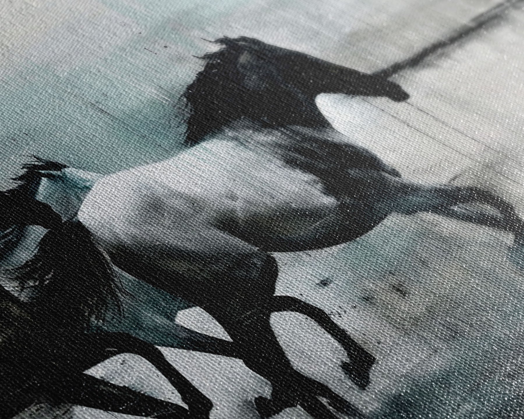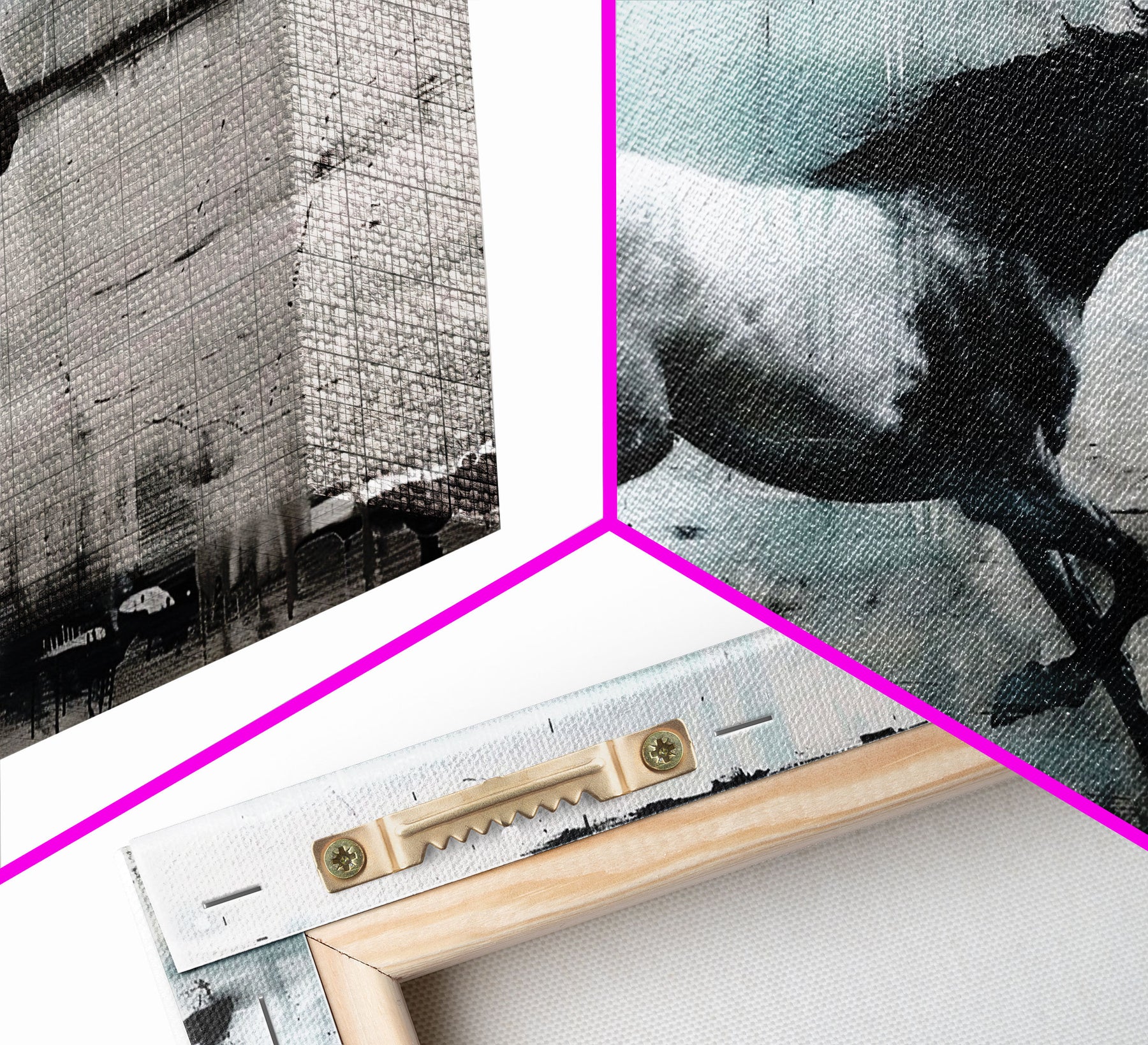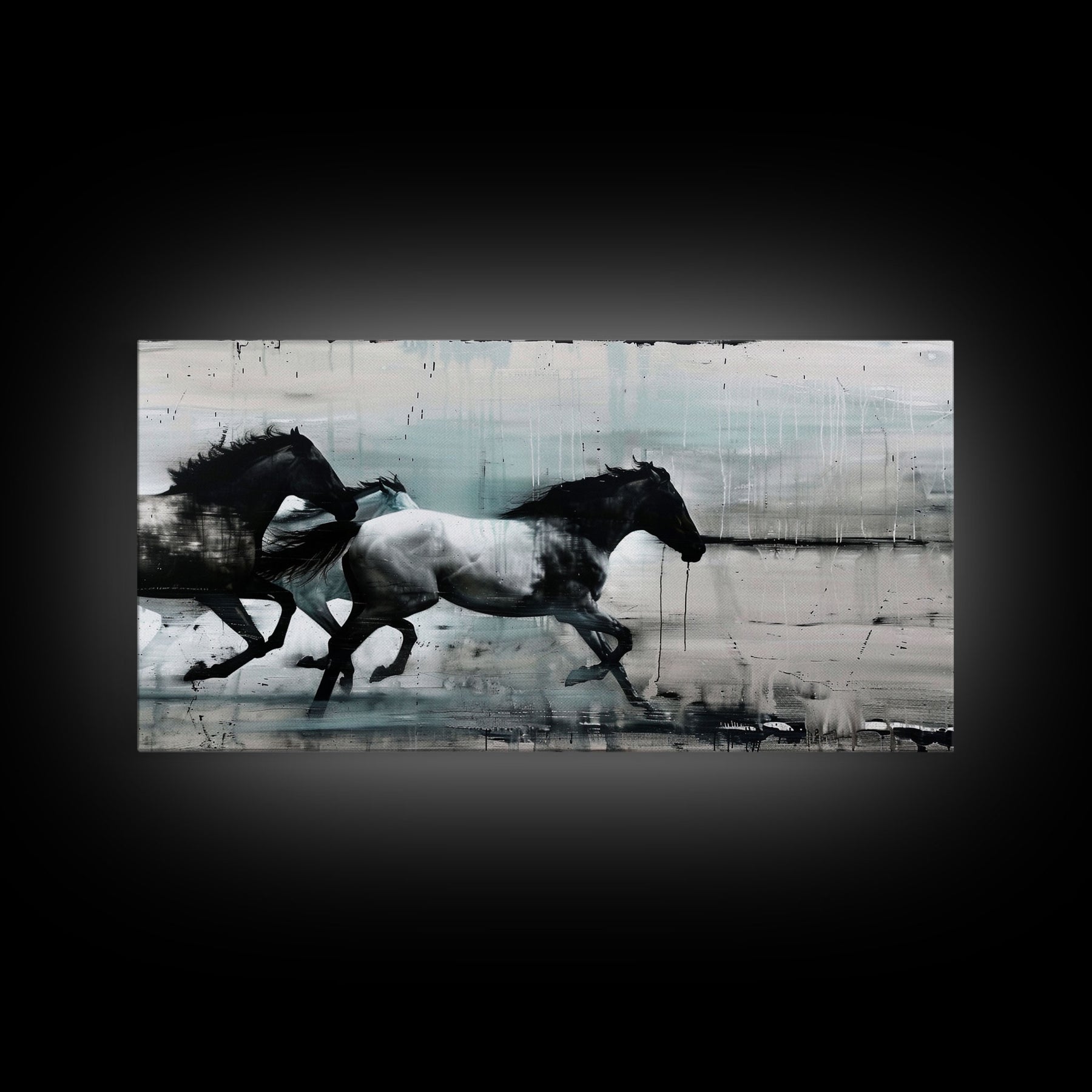 Colorful Abstract Horses Running, Black and White Wall Art, Framed Canvas Print for Living Room or Bedroom Decor, Equestrian Art