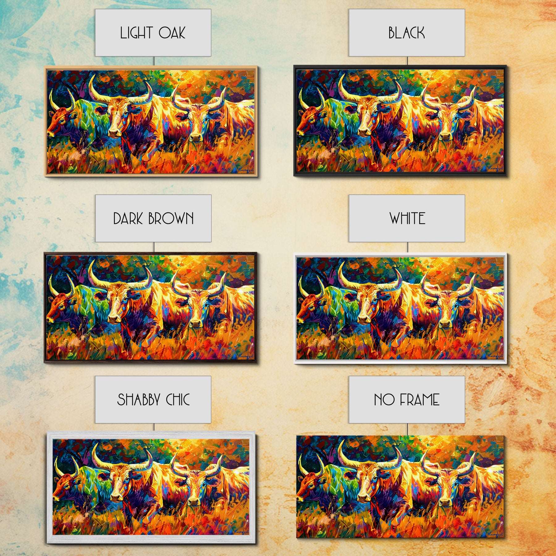 Vibrant Cattle in Abstract Art Style, Perfect for Living Room Art, Framed Canvas Print, Bedroom Decor, Home Decoration, Farmhouse Decor