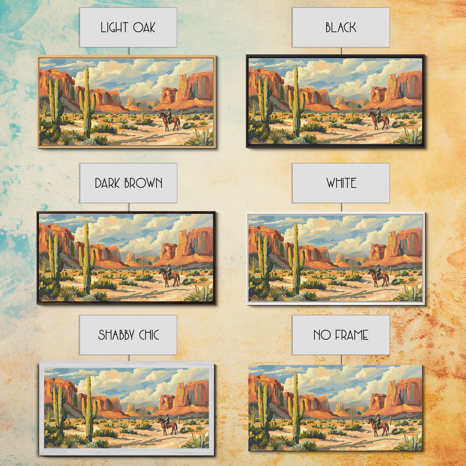 Lone Cowboy in Desert Landscape, Framed Canvas Print, Perfect for Rustic Living Room Art, Western Wall Art, Home and Bedroom Decor