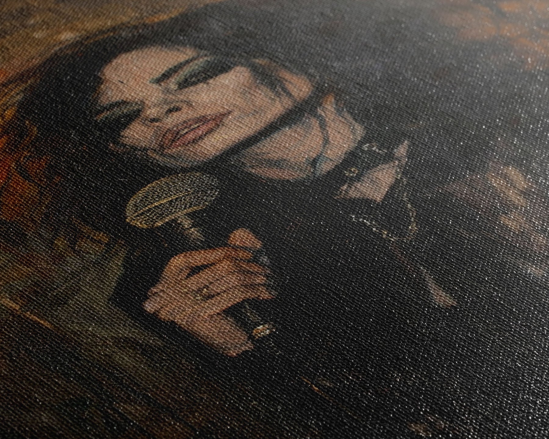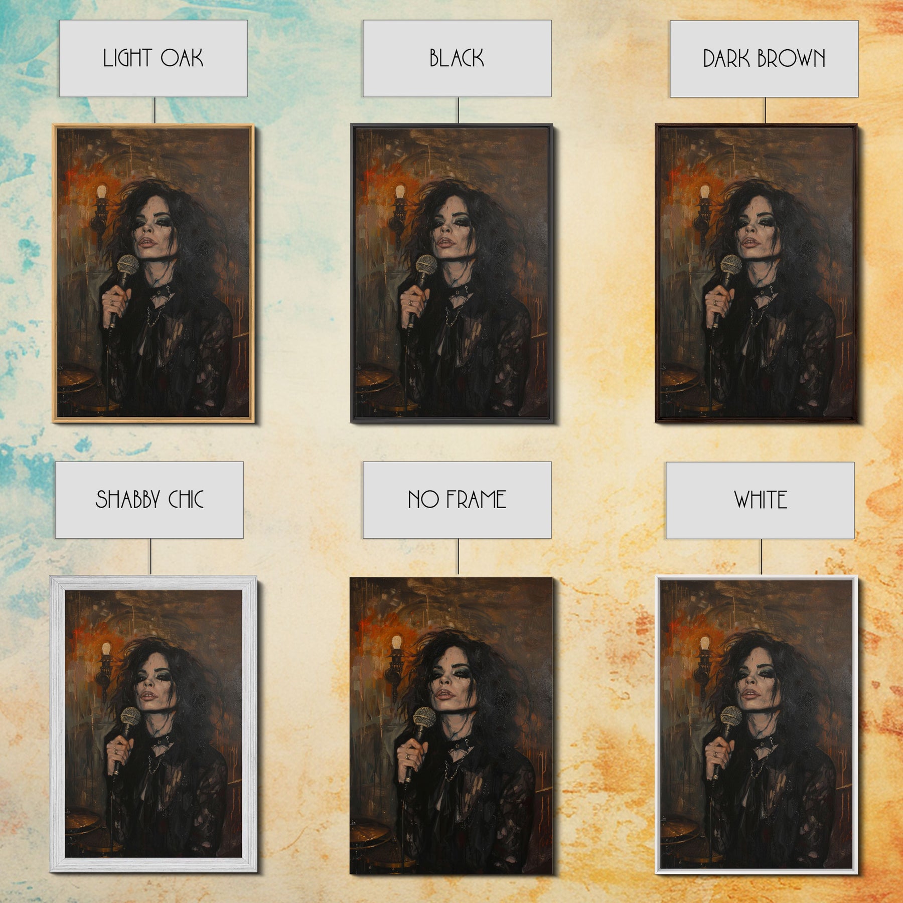 Gothic Singer with Dark Makeup - Halloween Art, Gothic Art, Spooky Decor Haunted Concert Dark Music Art, Eerie Portrait, Framed Canvas Print