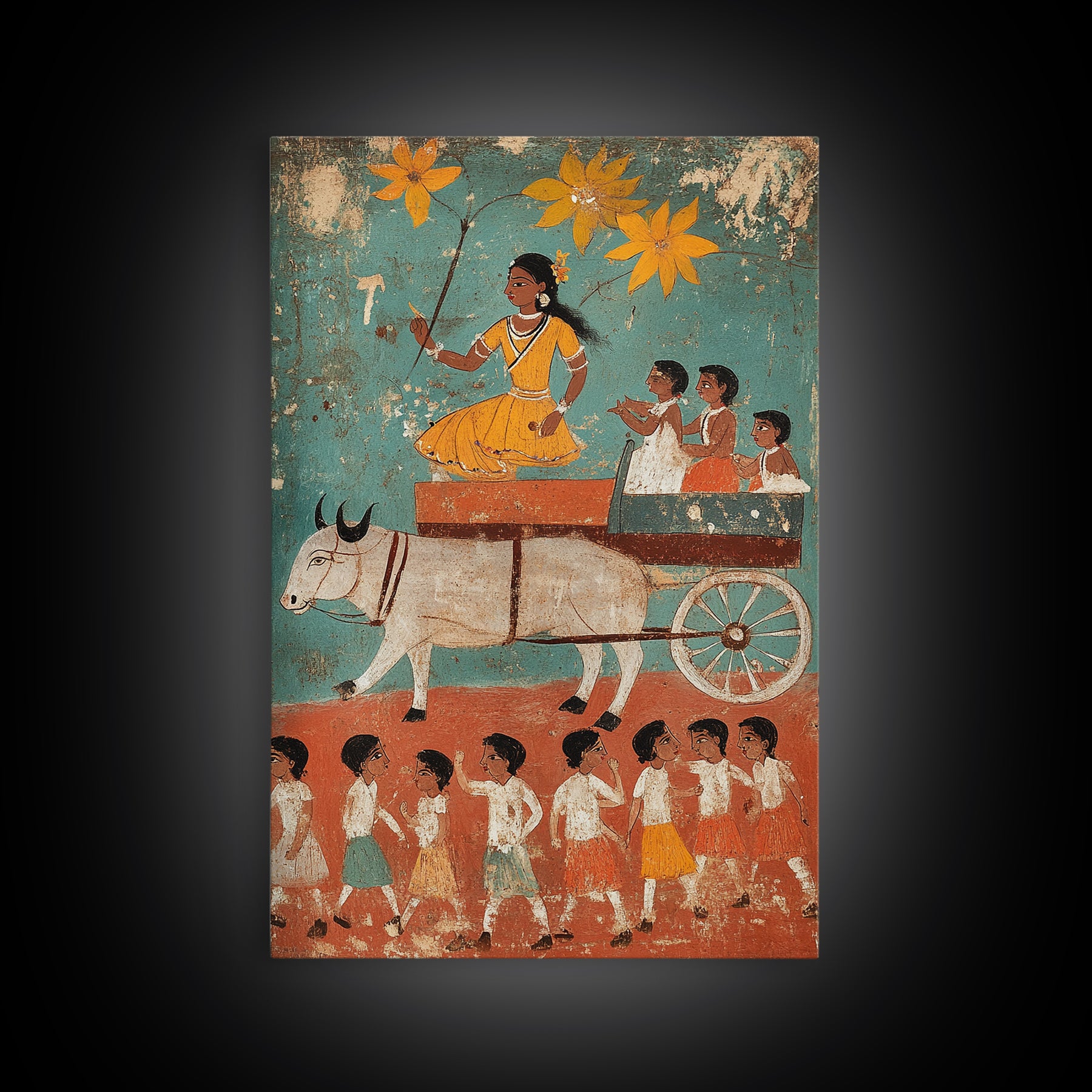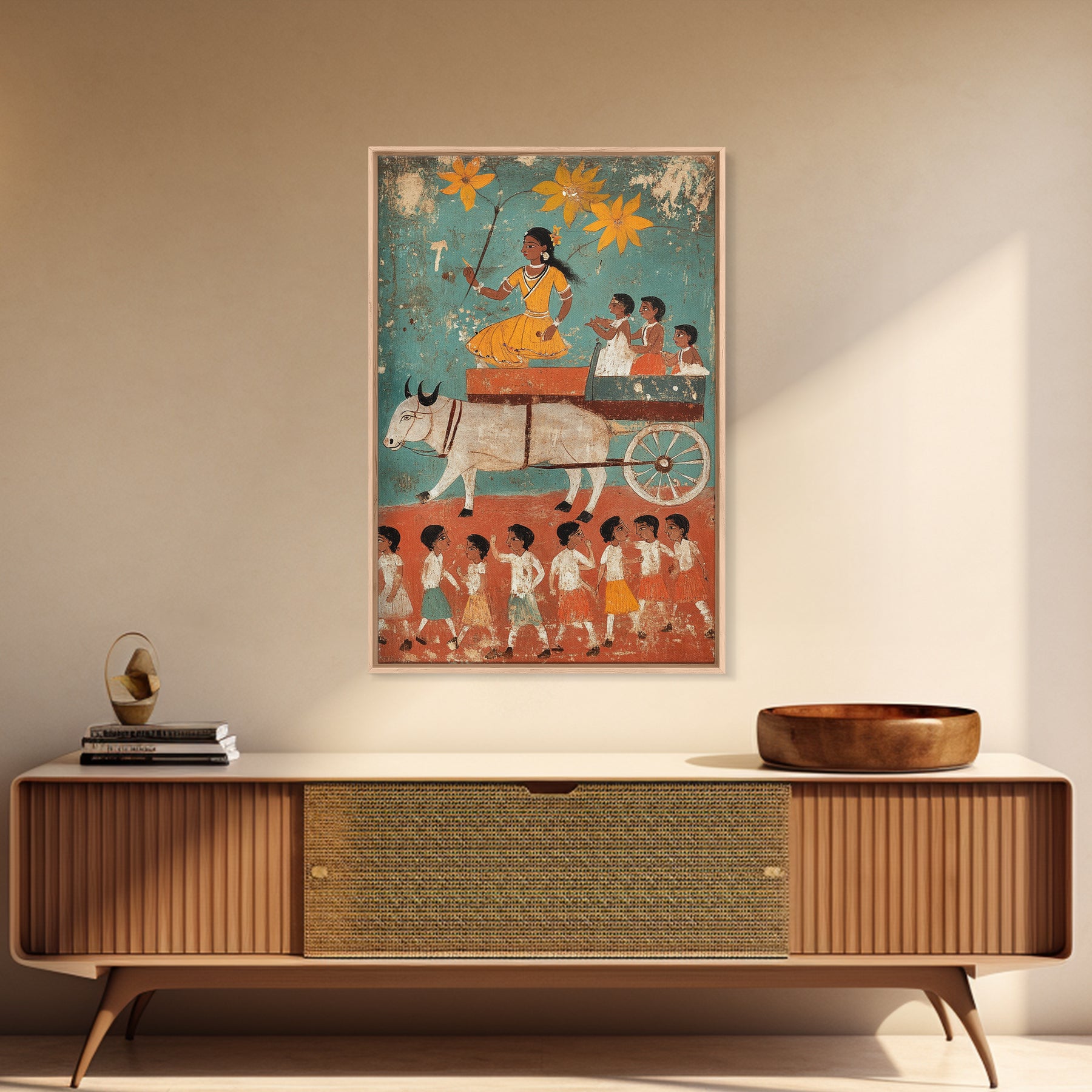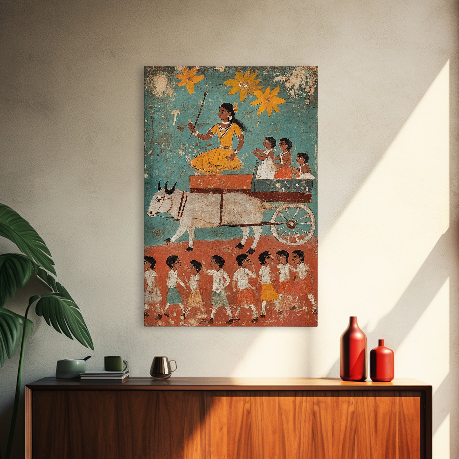 19th Century Folk Art Canvas Print, Rustic Home Decor, Chicano Wall Art, Rustic Farmhouse Painting, Minimalist Decor